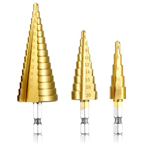 ▶ Juego de Brocas Escalonadas para Taladro de Titanio – Acero de Alta Velocidad – Juego de 3 piezas de 4-12mm/4-20mm/4-32 mm