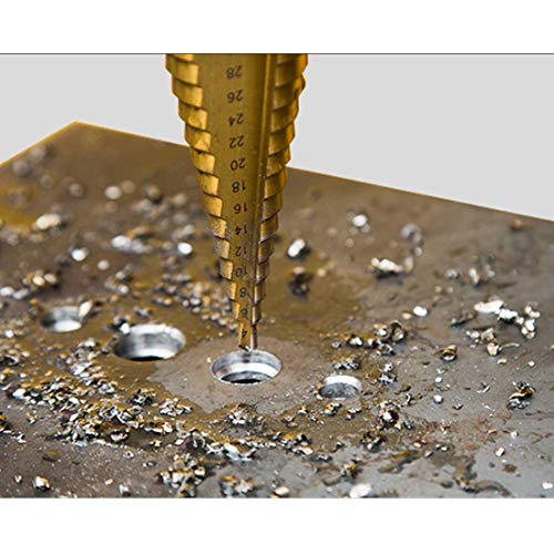 - Esta broca es un nuevo agujero de corte de titanio cónico de gran tamaño HSS hecho de titanio recubierto de acero de alta velocidad y alta calidad para reducir la fricción y el calor