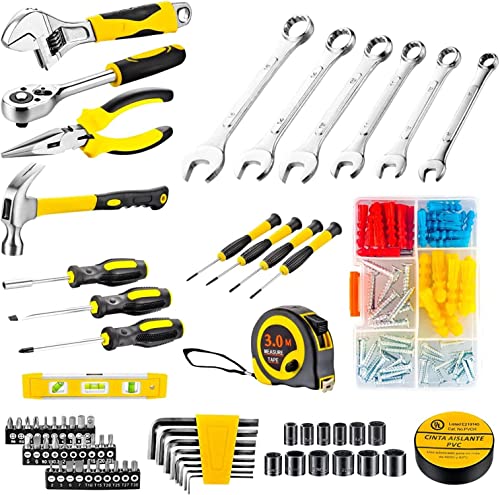 - ✅Fácil de transportar y almacenar: adecuada para la mayoría de los pequeños proyectos de mantenimiento y bricolaje en la casa. Juego de herramientas de trabajo muy adecuado para entusiastas del bricolaje, reparadores, trabajadores de la construcción, mecánicos, talleres de carrocería, etc. Alojado en una práctica funda moldeada por soplado para un fácil almacenamiento de herramientas y portabilidad.