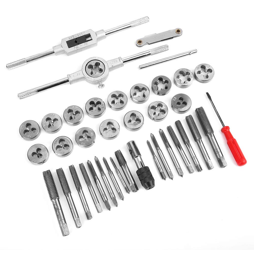 ▶ Juego de machos y matrices de 40 piezas Juego de machos y matrices maestro Juego de herramientas manuales de rosca de rosca de acero de aleación de alta dureza, Juego De Machuelos Y Tarrajas