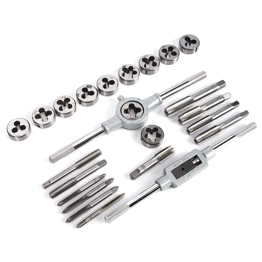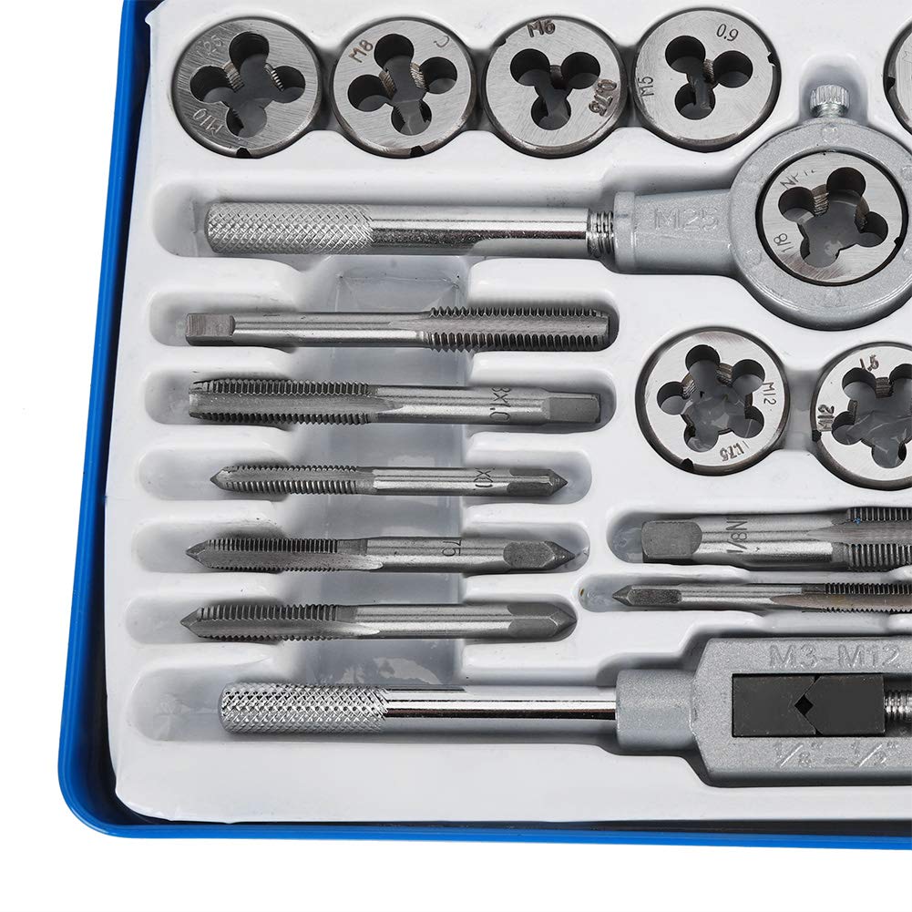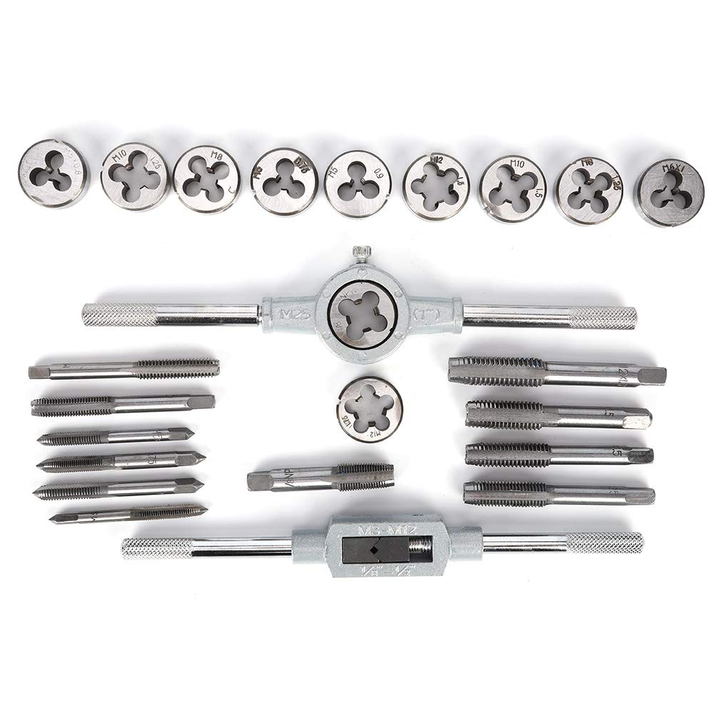 ▶ Juego de machos y matrices roscados de 24 piezas, juego de herramientas roscadas internas y externas estándar métrico y SAE con caja, Juego De Machuelos Y Tarrajas