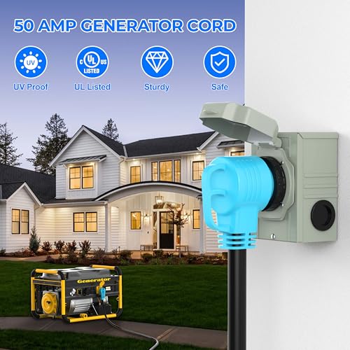 - Versátil: el cable de bloqueo de 50 amperios permite que el generador a tu casa o conecte la energía del parque de caravanas a tu caravana, campistas, remolque