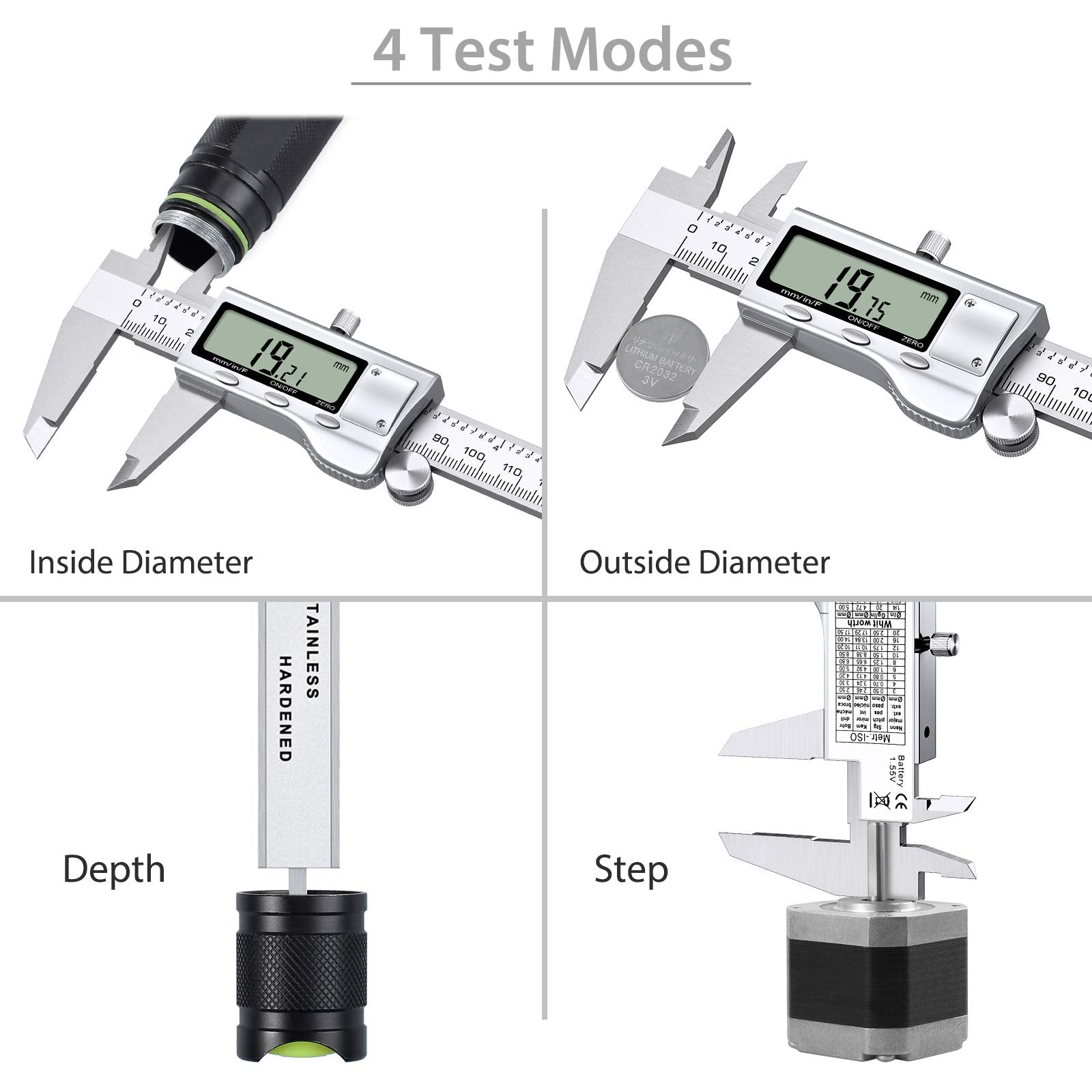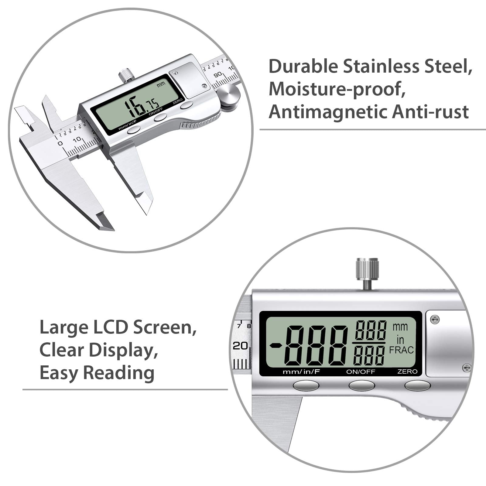 - 【Tres Escalas y LCD】 Calibre Digital de Acero Inoxidable de Mayor Calidad con Conversión de Pulgadas / Métrico / Fracción. Extra Larga Patalla LCD te Facilita Leer la Medición.