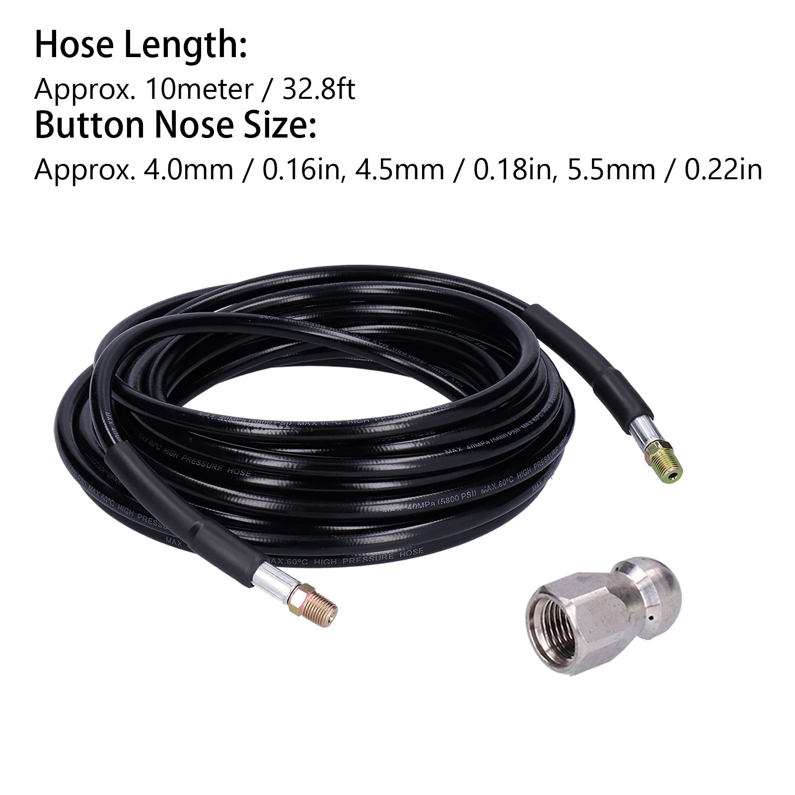 Chorro de Alcantarillado, incluye manguera de lavado a presión flexible resistente y 7 boquillas de gama alta y adaptadores, Manguera de 10 m de longitud para el mejor drenaje Jet NPT de
