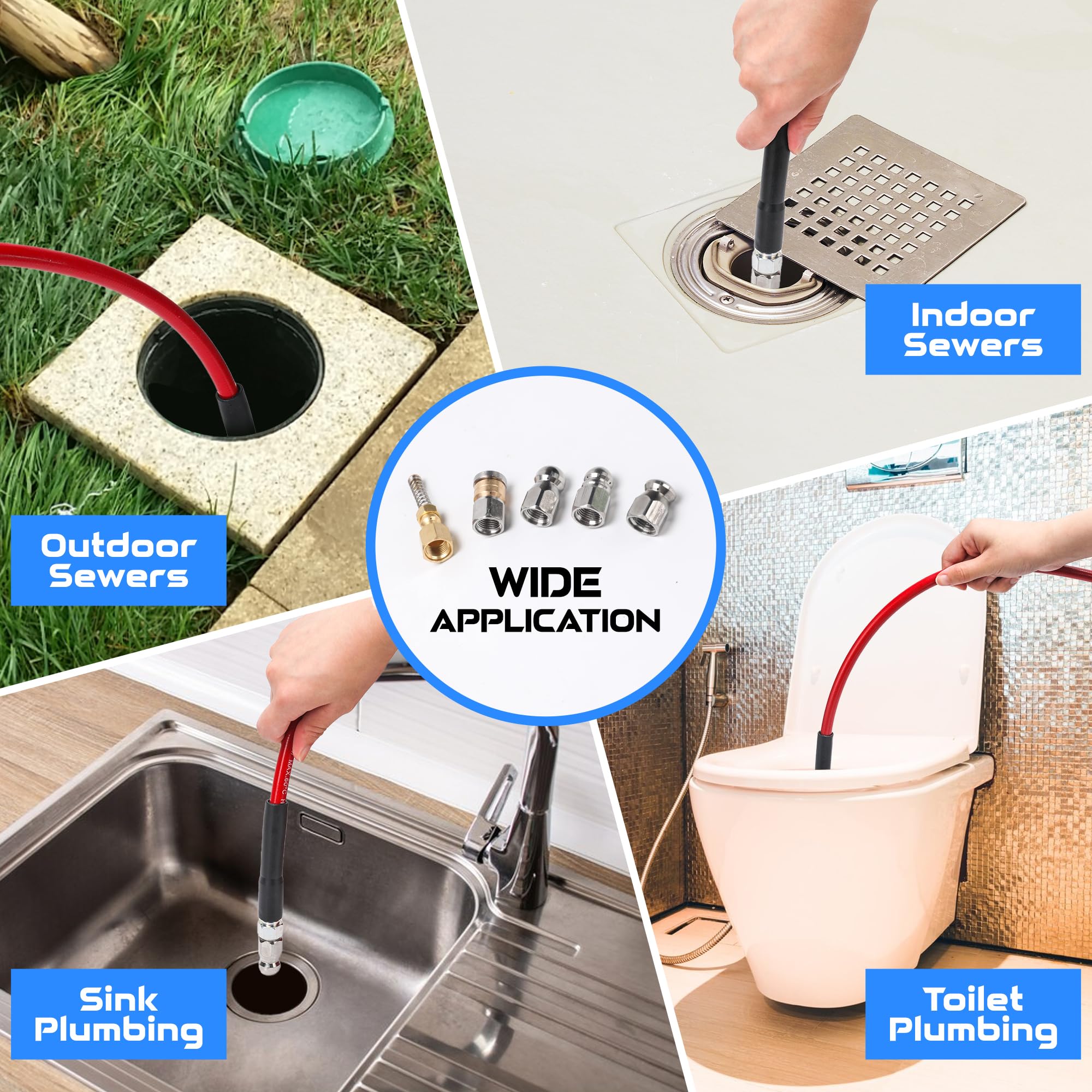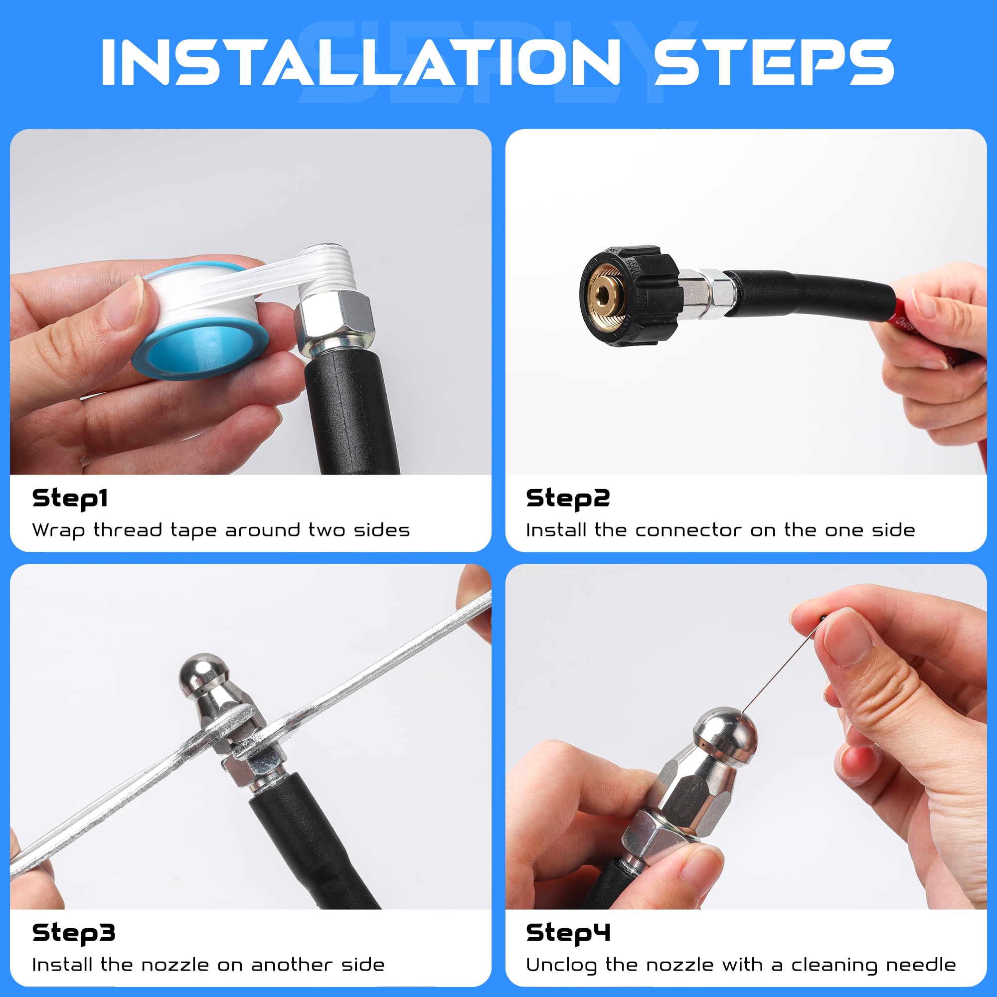 - Con un enchufe rápido de 1/4 pulgadas y acoplador NPT M22 a 1/4 pulgadas, este kit de chorro se conecta a la mayoría de lavadoras a presión con facilidad. Disfruta de un montaje sin complicaciones y un ajuste a prueba de fugas, asegurando un funcionamiento suave durante las difíciles tareas de limpieza de drenaje.