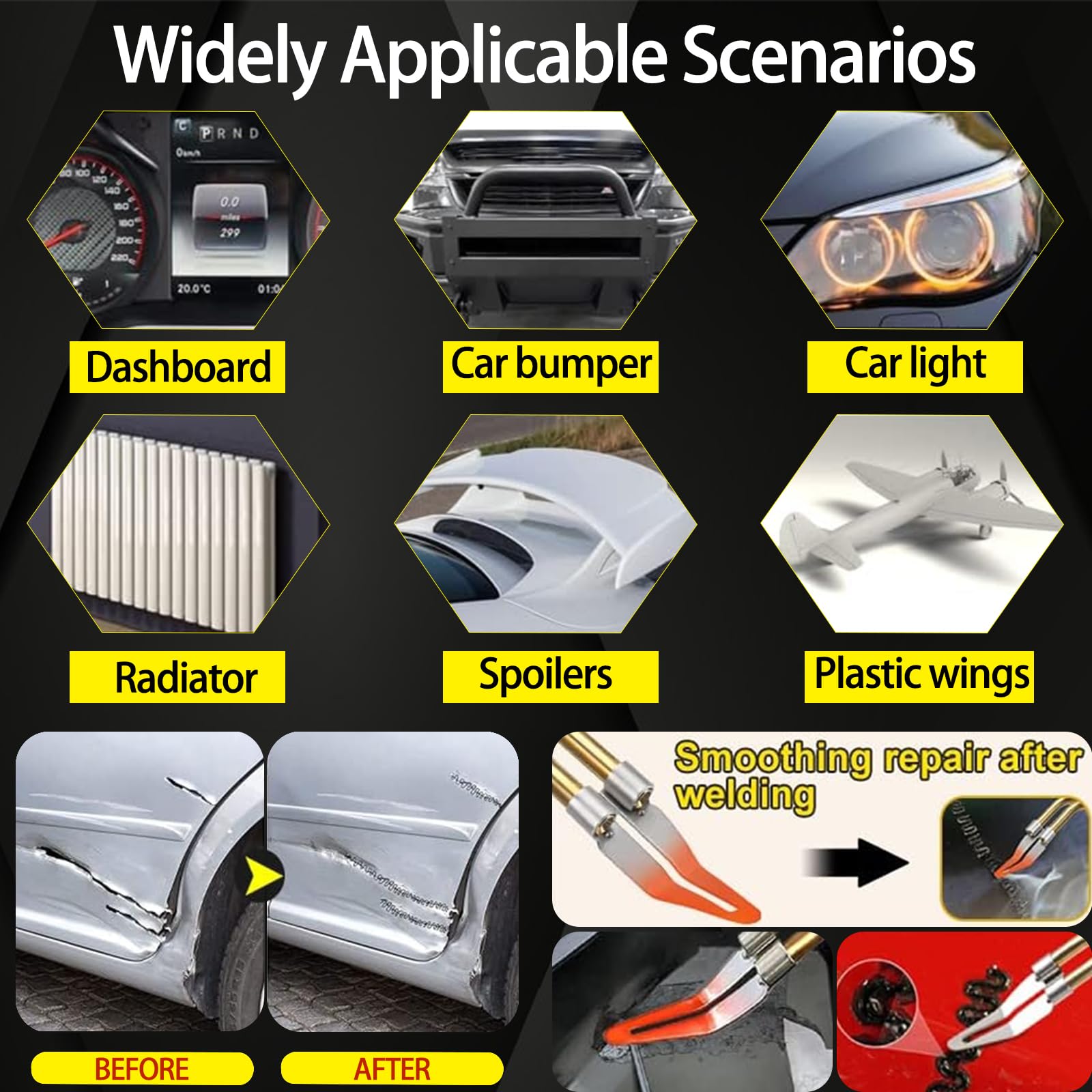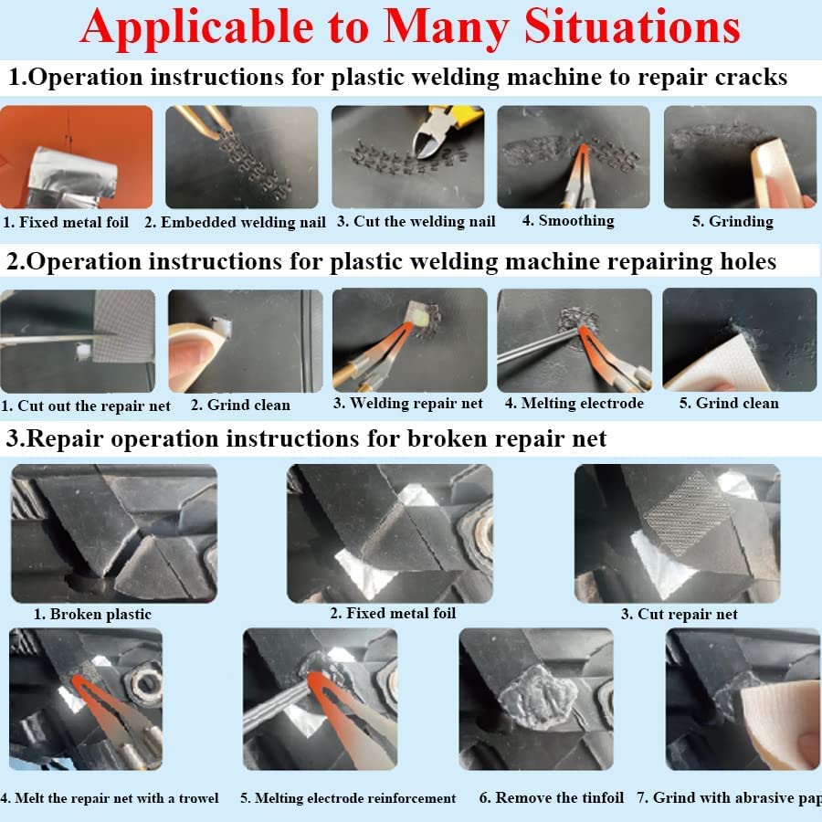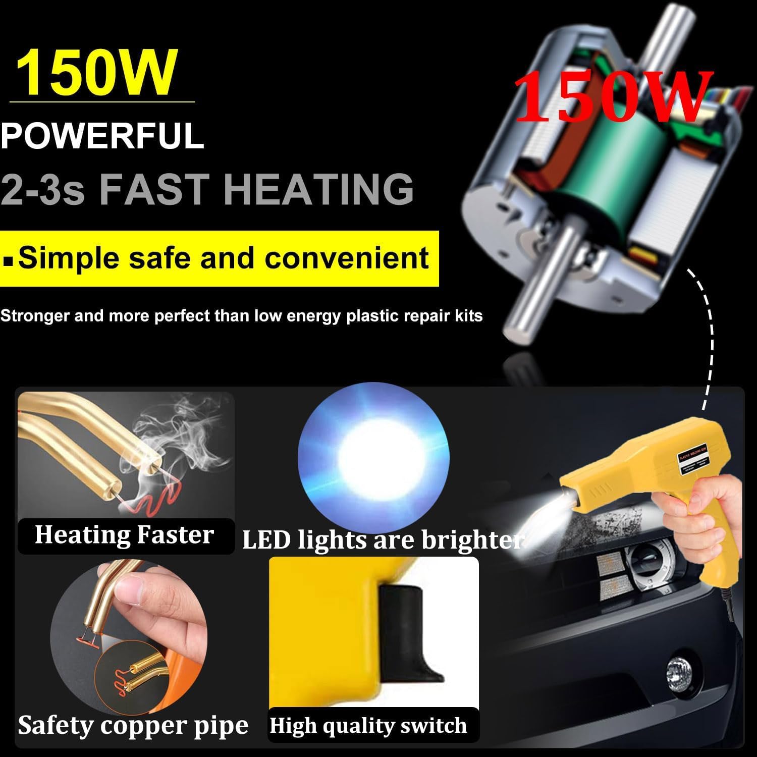 - Amplias aplicaciones: los kits de reparación de plástico pueden reparar el 98% de los productos de plástico en el mercado. ---Consejos: este producto es una pistola de soldadura mejorada de 150 W. Las instrucciones no se han actualizado debido a la actualización del producto. Si recibes una versión antigua de las instrucciones, no lo dudes, nos aseguramos de que el producto en sí es una pistola de soldadura de 150 W. Es solo que las instrucciones no se actualizaron a tiempo. Lamentamos las molestias.