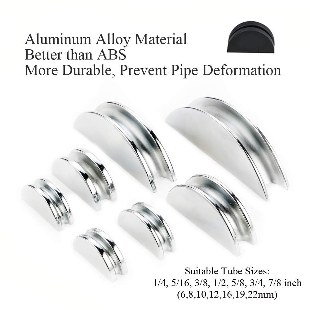 - Tamaño adecuado: rango de diámetro de codo 7 para tuberías: 1/4, 5/16, 3/8, 1/2, 5/8, 3/4, 7/8 pulgadas (6,8,10,12,16,19,22 mm) Diámetro exterior. Capacidad de corte de tubos: 3/16 a 1-1/4 pulgadas (4-32 mm)