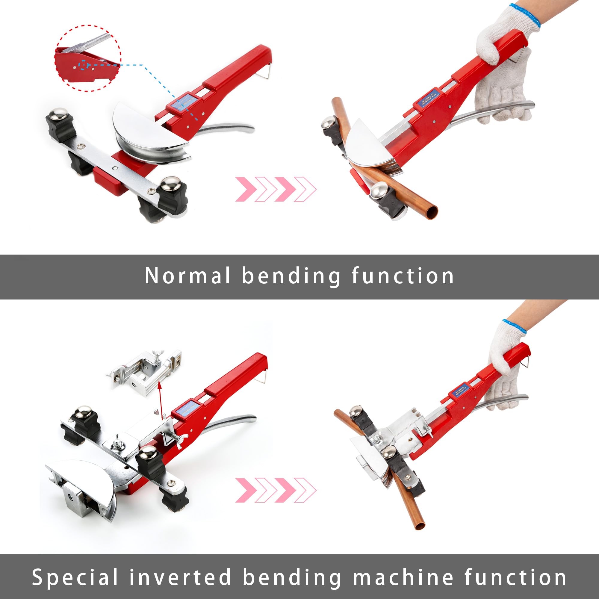 - Aplicación: herramienta de flexión endurecida duradera diseñada para doblar cobre suave, aluminio, cobre suave recubierto, ampliamente utilizada en instalaciones sanitarias y de calefacción, calefacción por piso radiante, refrigeración y aire acondicionado, sistemas hidráulicos