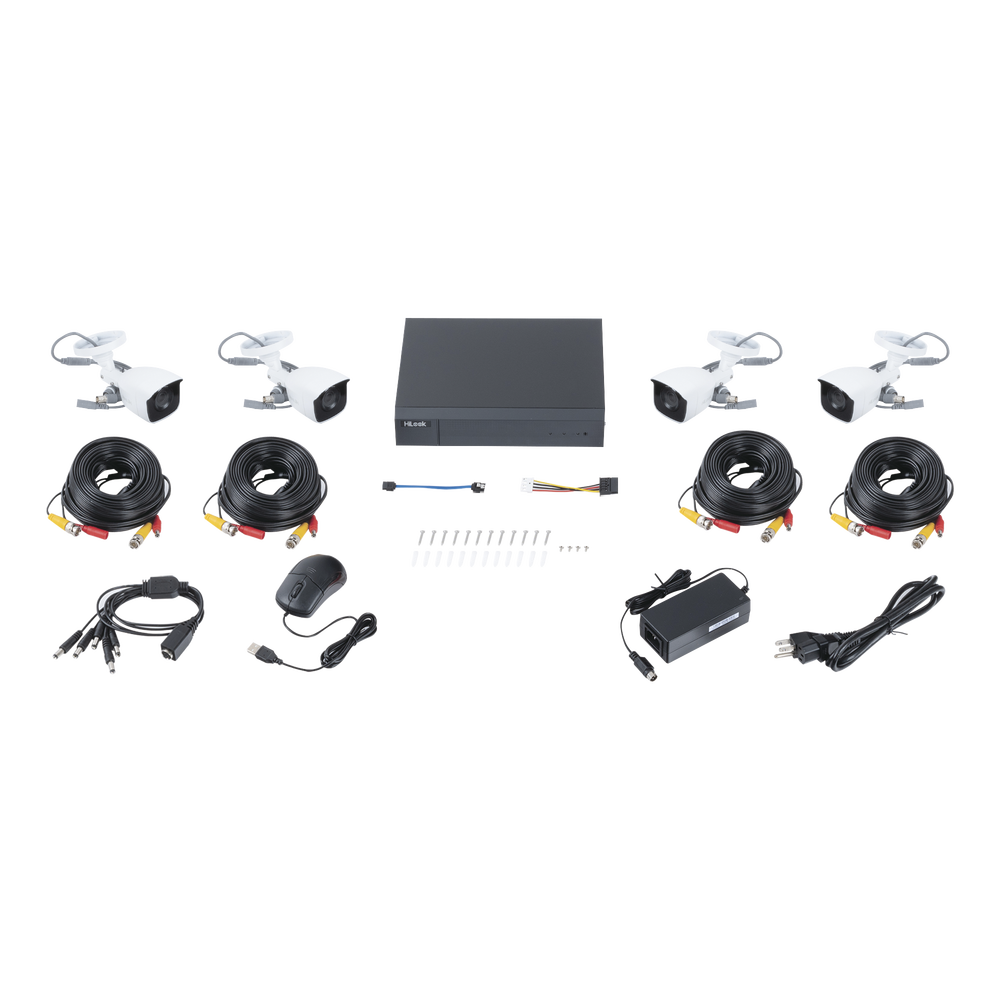 KIT TurboHD 1080p / DVR 8 canales con H.265+ / 4 Cámaras Bala Metálicas / Fuente de Poder / Accesorios de Instalación