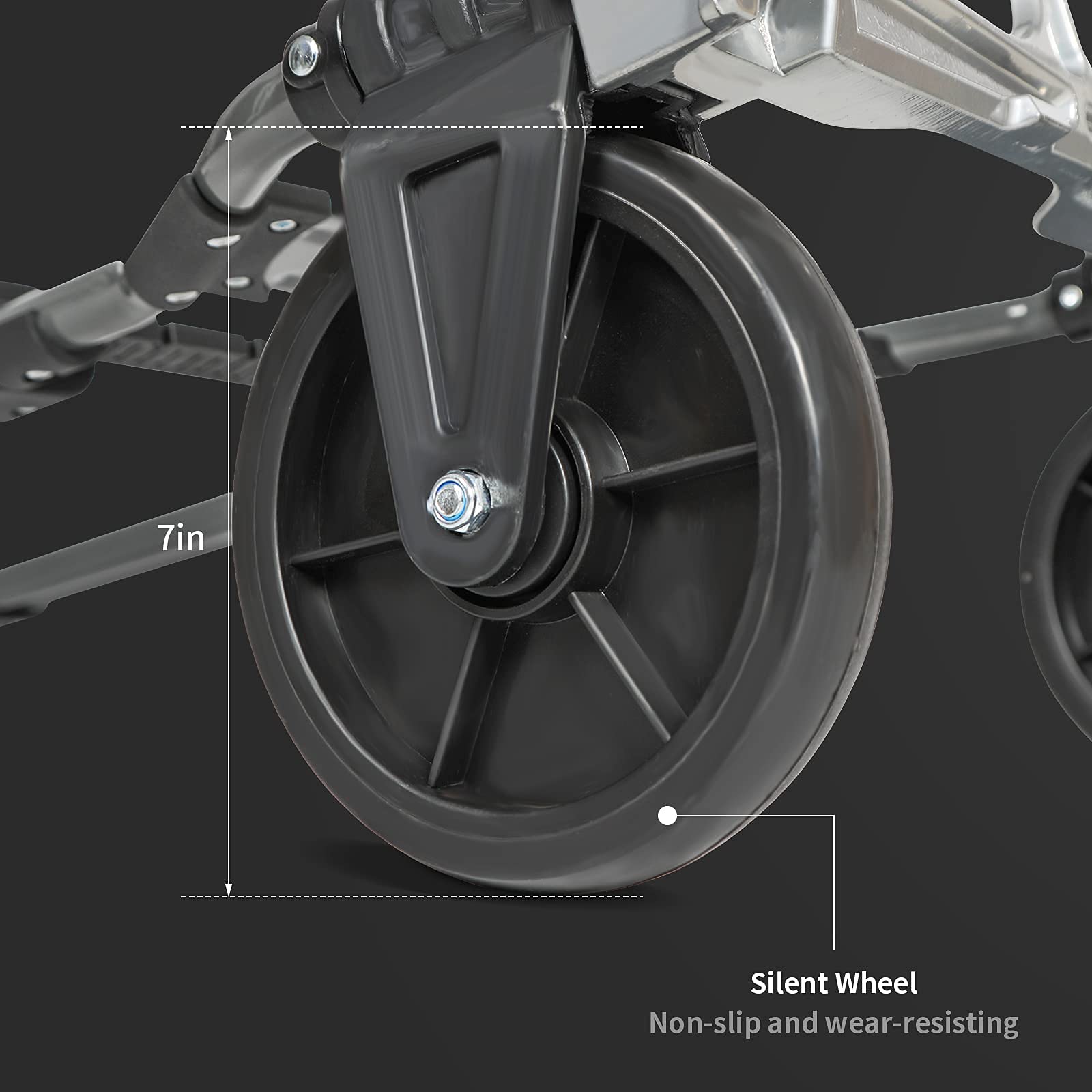 - Muñeca portátil y mango cómodo: este asa plegable para carrito de mano está cubierta con espuma de goma suave para mayor comodidad y mayor agarre. El tamaño máximo del mango telescópico es de 44 pulgadas. Utilizando ruedas PP+EVA de 7 pulgadas, sin ruido y rodamiento suave. Además, también ofrecemos una cuerda elástica de látex.