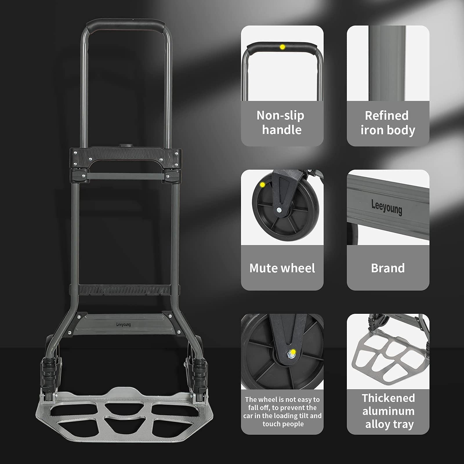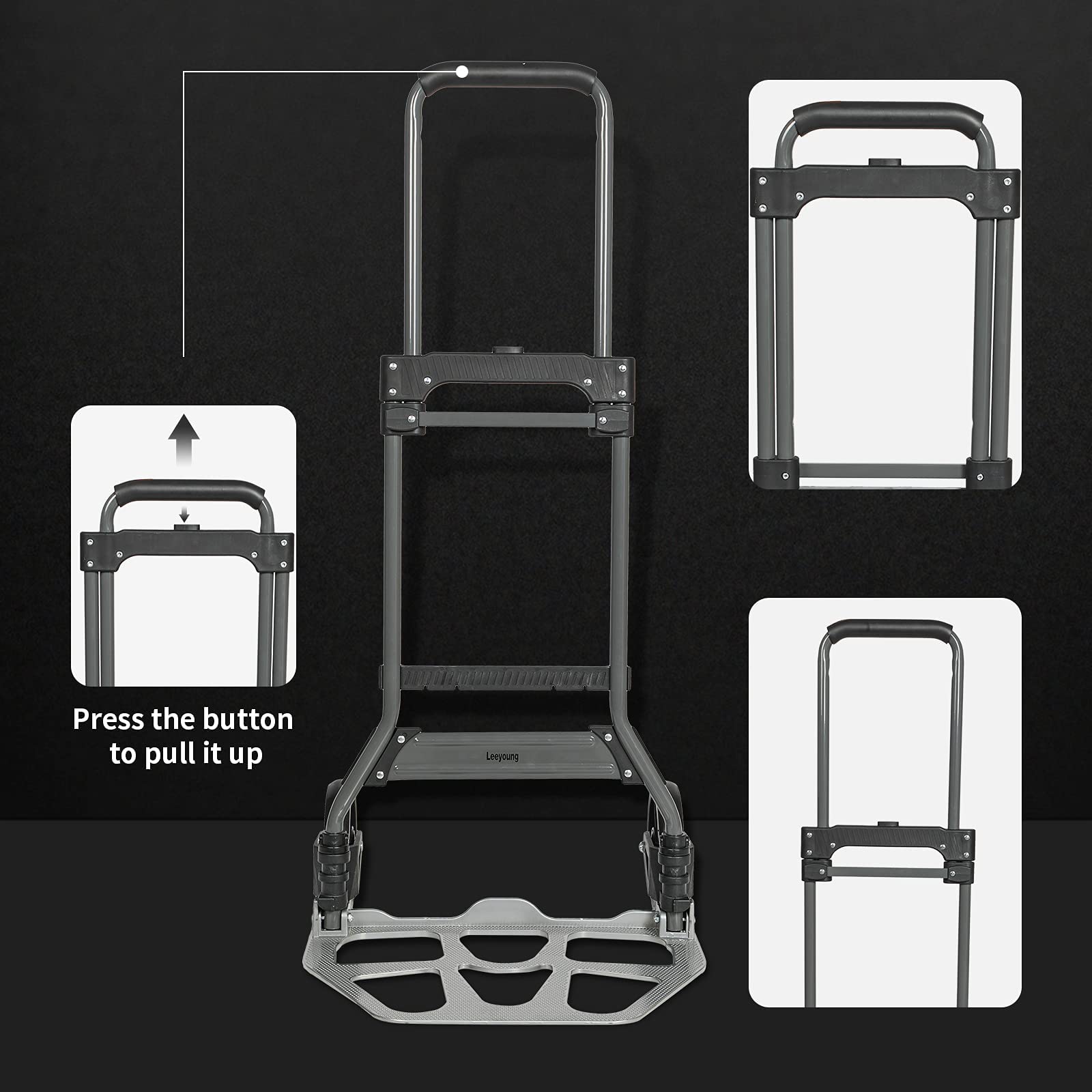 Carretilla de mano plegable y dolly, capacidad de 200 libras con mango telescópico y ruedas PP + EVA