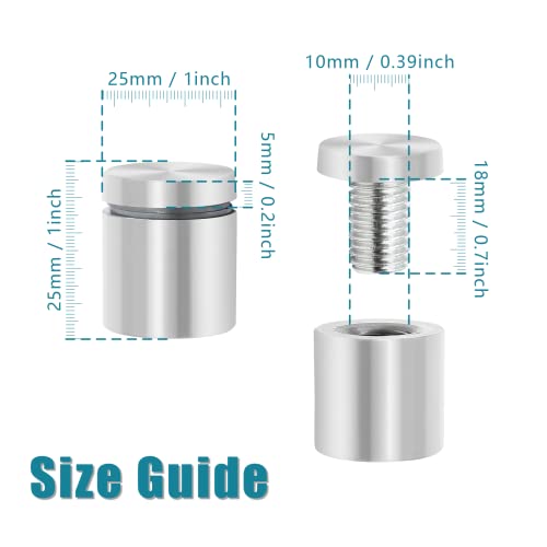 🔩 Litoexpe 24 tornillos de separación para letreros, 2 x 2,5 cm de acero inoxidable para soportes de pared, tornillos publicitarios, accesorios de vidrio para letreros acrílicos, obras de arte de vidrio