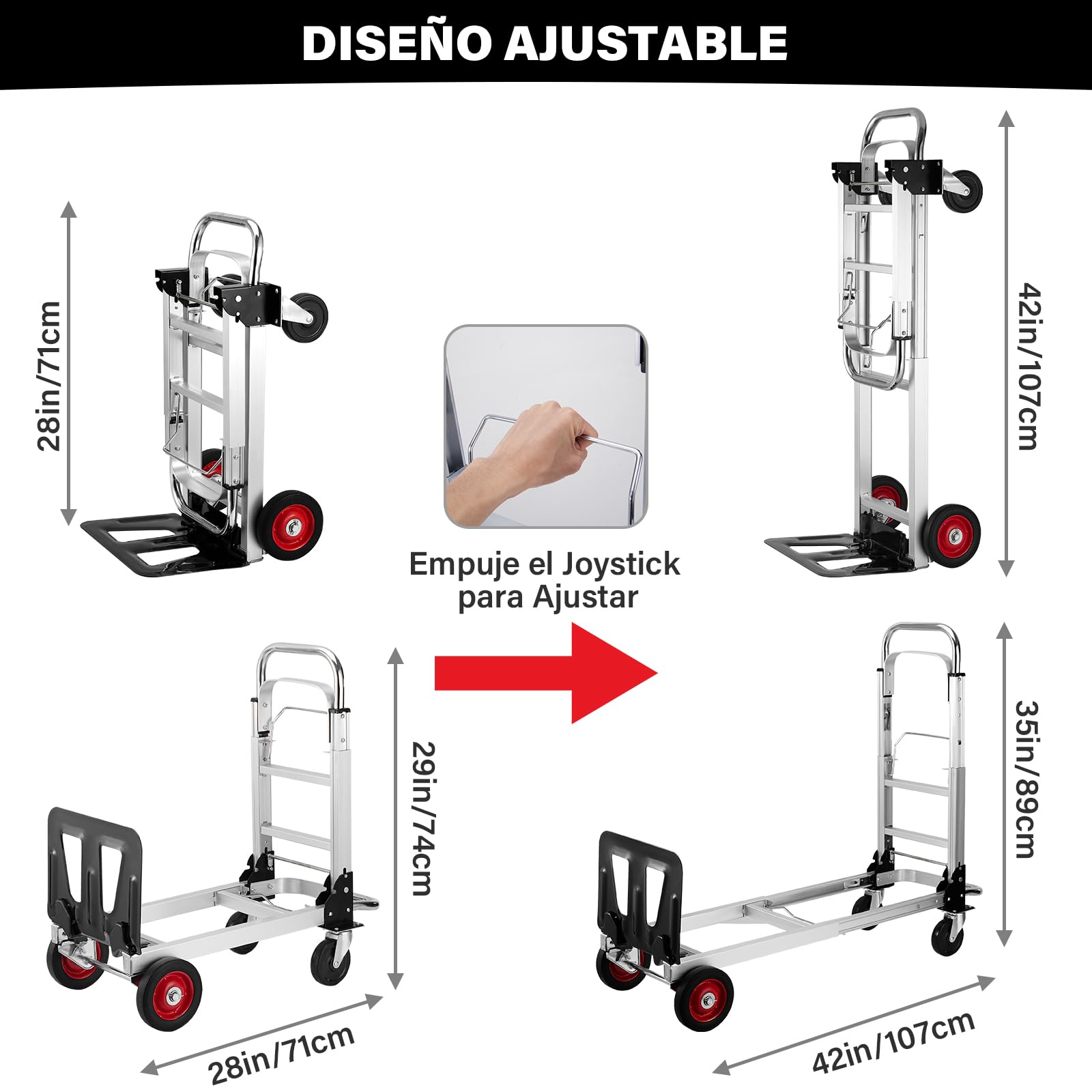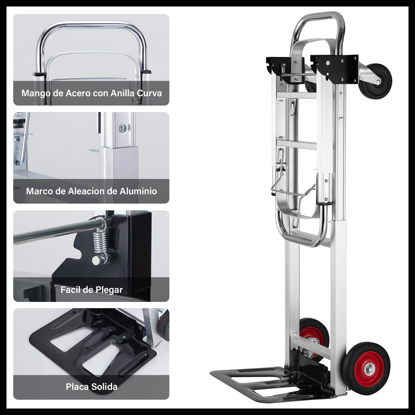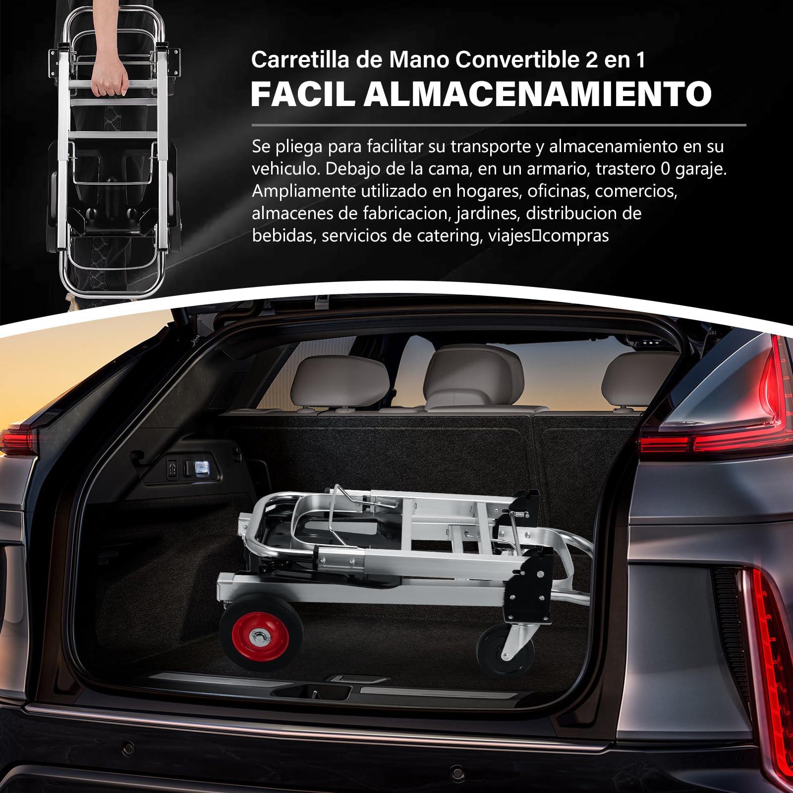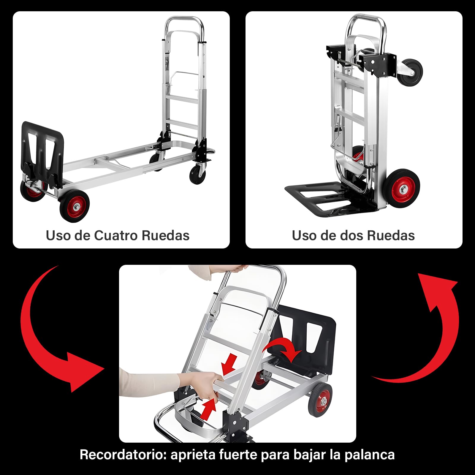 Carro y Carro Plegable Convertible 3 en 1, Caro de Aluminio Portátil con 2 Ruedas Giratorias, Adecuado para Equipaje, Mudanzas, Uso en Oficina, Viajes, Capacidad de Carga 300 Libras