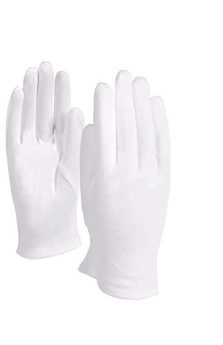 Lucky SLD - Guantes de algodón, 10 pares, talla grande, color blanco, para inspección de monedas, joyas