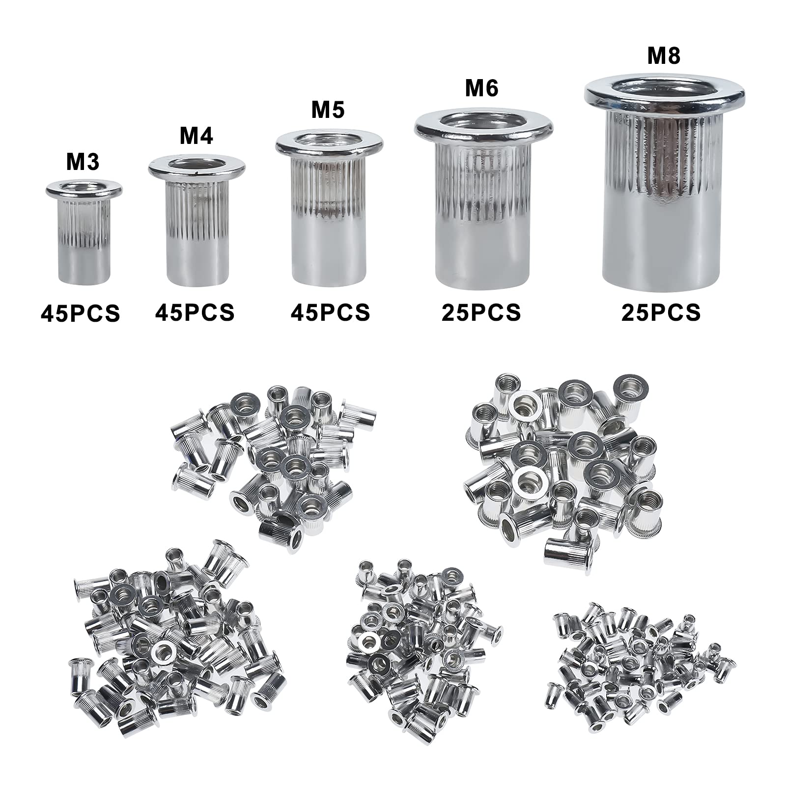 🔩 LuckyHigh - Juego de 191 piezas de tuercas de remache, juego de tuercas de remache, con pistola de tuercas de remache resistente, 5 mandriles roscados con boquillas, 185 tuercas de remache métricas