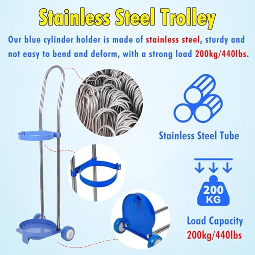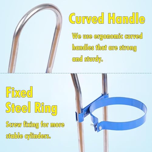 - Carro de acero for cilindros de gas: ¿Le preocupa que sus cilindros se vuelquen por un impacto accidental? Nuestro portacilindros está fabricado en acero inoxidable for mayor resistencia y estabilidad. Sus robustas bases soportan hasta 200 kg/440 lb for su tranquilidad.