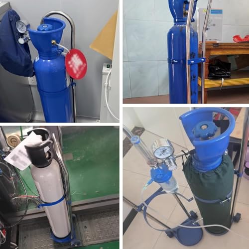 - Soporte estable for matraz de oxígeno: la base del soporte del cilindro tiene 17 cm (6 5/7") de diámetro y cuenta con un anillo de acero atornillado que permite que el cilindro se ajuste perfectamente, evitando que se mueva o se vuelque y garantizando la seguridad en su hogar o lugar de trabajo
