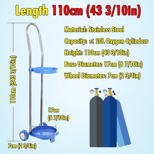 Carretilla portátil con Ruedas for Transportar Cilindros de oxígeno, Ligera y de una Sola Mano, for Tanques de Gas de 10, 15 y 20 litros. Soporte para bombona de Gas(20L 110cm(43 3/10"))
