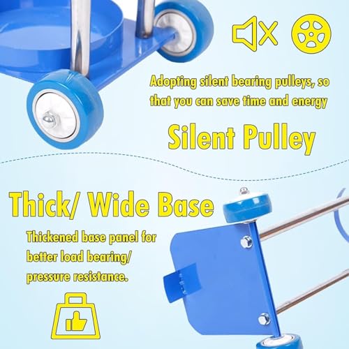 - Carro de almacenamiento de tanque con polea: utilizamos ruedas de goma silenciosas de 7 cm de diámetro (2 3/4 ") que se deslizan fácilmente en cualquier espacio, ya sea en pisos estrechos/irregulares o pasillos concurridos, rodando suavemente y reduciendo los tirones al moverse, ahorrándole tiempo y esfuerzo
