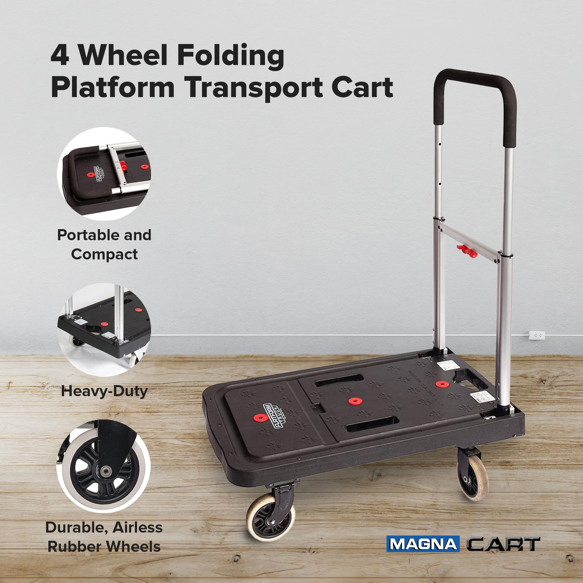 Plataforma de carga manual de 4 ruedas con 300lb (150kg) de capacidad. Magna Cart Flatform