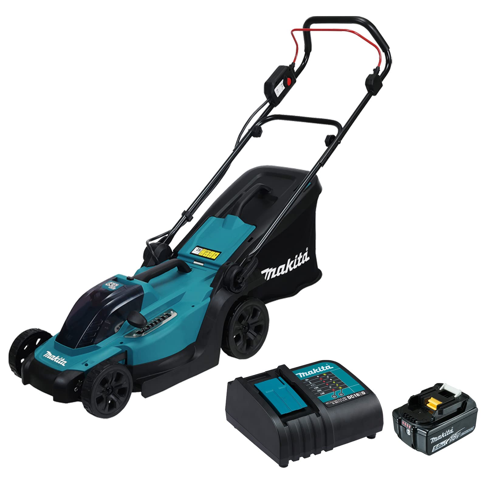 - El recogedor de césped cuenta con un indicador de nivel de césped (tablero superior de plástico + tela). Bajo nivel de ruido adecuado para su uso en áreas residenciales y espacios públicos. Arranque inalámbrico, cero emisiones y mantenimiento reducido; sin necesidad de gas ni aceite.Arranque instantáneo; simplemente colocando una batería LXT de 18V cargada y estará listo para usar.