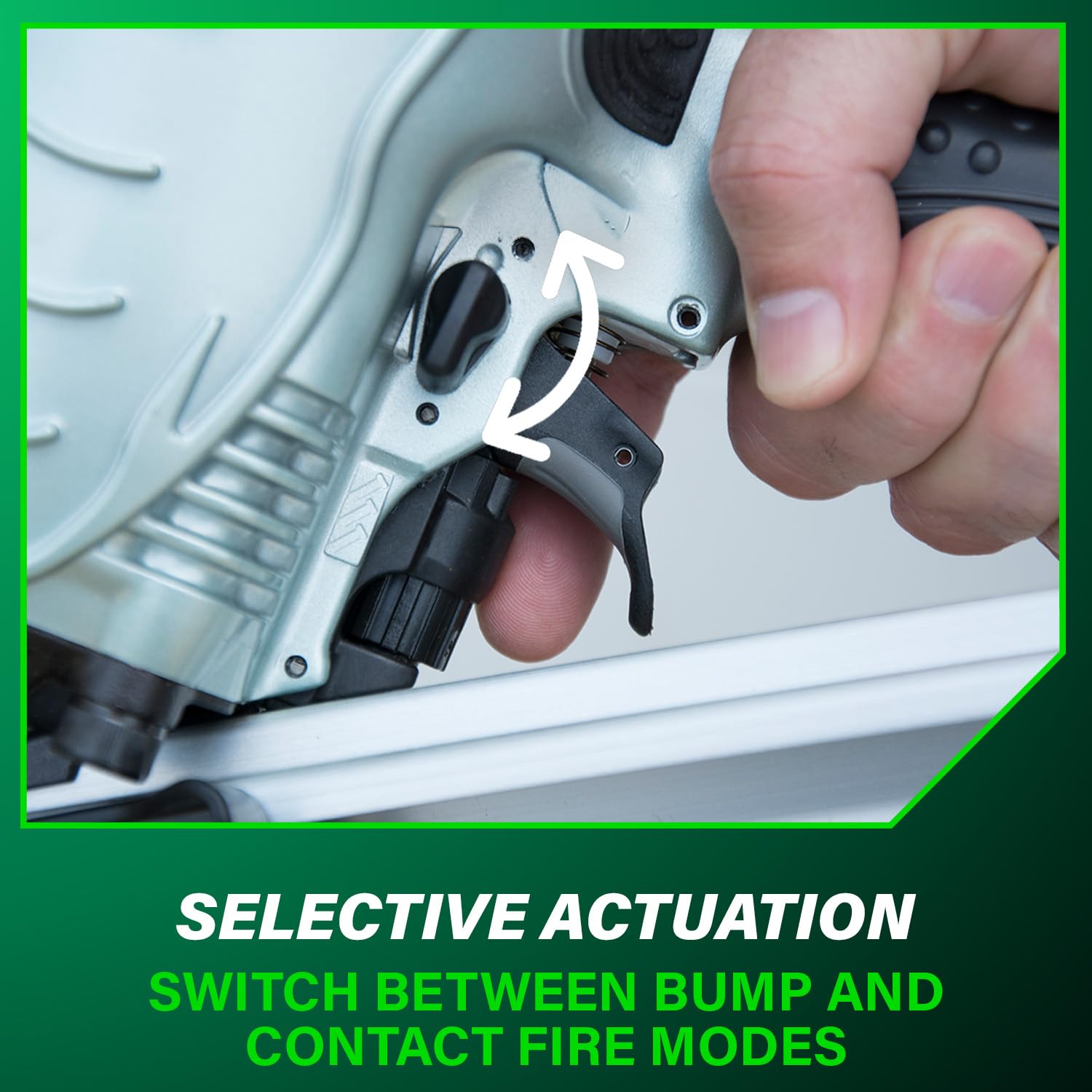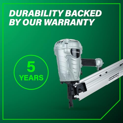 Detalles: La clavadora de marcos NR90AES1 maneja clavos de plástico de 2 "hasta 3-1 / 2" de longitud y presenta el "diseño industrial" de próxima generación de Metabo HPT. El protector de cabeza rediseñado permite un proceso de desmontaje más rápido y sencillo, ahorrando un tiempo valioso durante el mantenimiento de la herramienta. Con un peso de tan solo 7.5 lbs, es fácil de usar todo el día, y al mismo tiempo proporciona la potencia de una clavadora más voluminosa y pesada. Puede usarse para pisos y marcos, construcción de armaduras, construcción de ventanas, subsuelos, cubiertas de techo, revestimiento de paredes y construcción de viviendas.