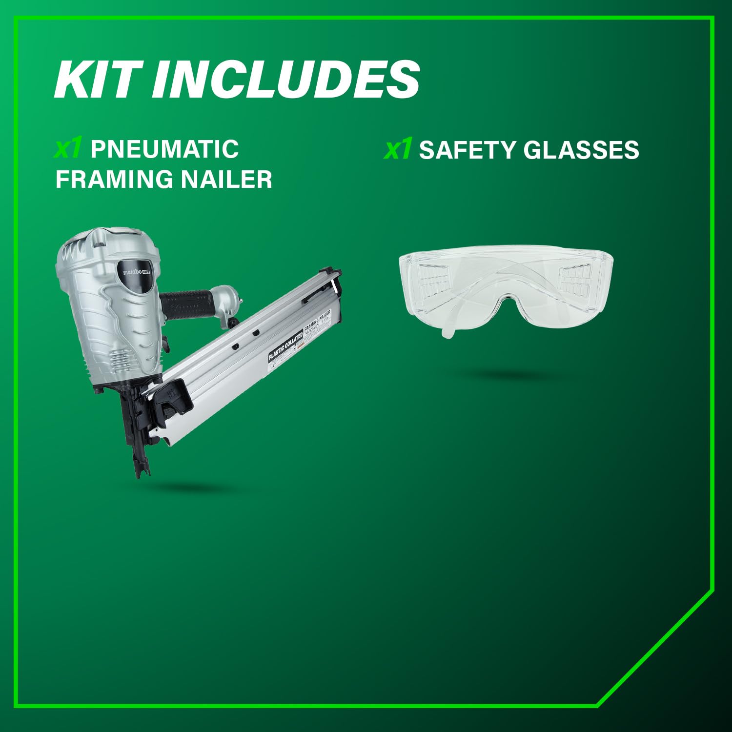 Clavadora de encuadre neumática, marca profesional preferida de clavadoras neumáticas, revista de 21 grados, acepta clavos de plástico de 2 a 3-1/2 pulgadas, ideal para enmarcar, pisos y