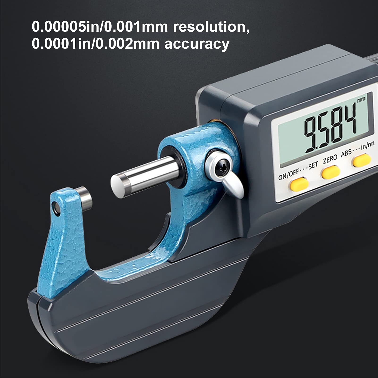 - El micrómetro digital profesional admite el intercambio de medición relativa y absoluta en cualquier posición (función ABS), rango de medición de 1 a 2 pulgadas (25 a 50 mm)