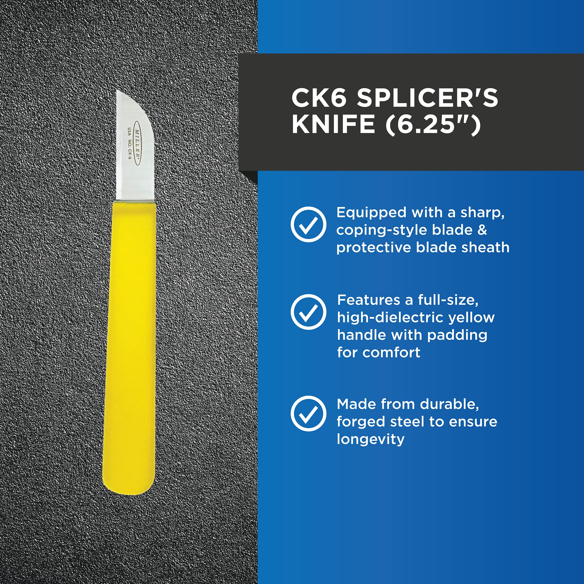 ▶ Miller Cuchillo de empalme serie CK6, cuchillo para electricista para profesionales, cuchillo utilitario de servicio pesado con soporte de vaina, herramienta de empalme de filamento, 15,25 cm