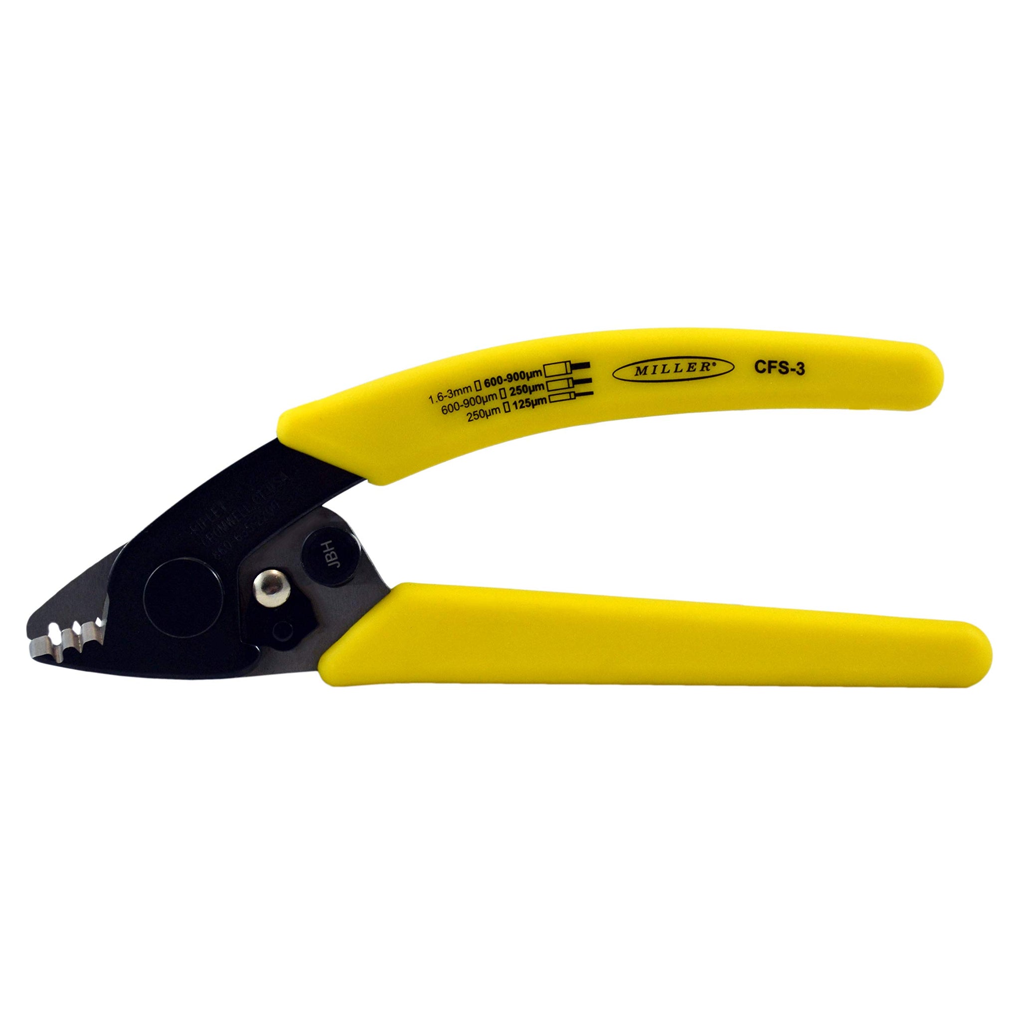 ▶ Miller Herramienta pelacables de tres agujeros de la serie CFS-3 para técnicos de trabajo, electricistas e instaladores, herramienta de empalme de cables segura, pelacables fácilmente portátil, 4.5 onzas
