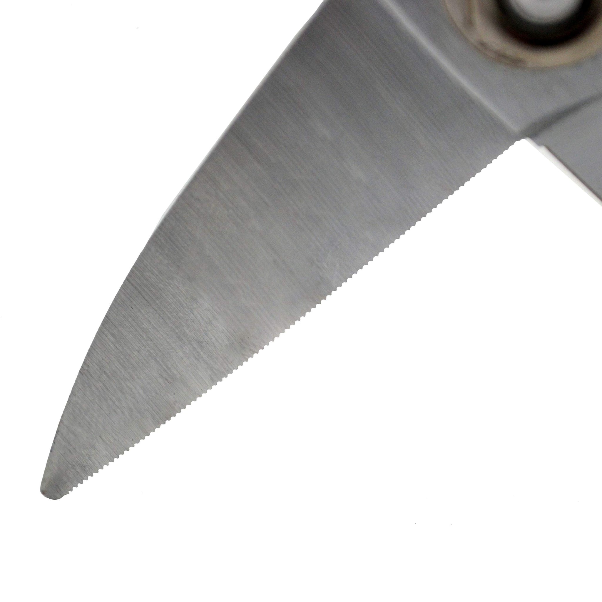 - Cortador de KEVLAR: las cuchillas están diseñadas con acero de molibdeno y vanadio de alto carbono para aumentar la longevidad. Una hoja está microserrada para ayudar a prevenir el deslizamiento mientras cortas. Esta herramienta de corte mide 140 mm de longitud y pesa 79 g.