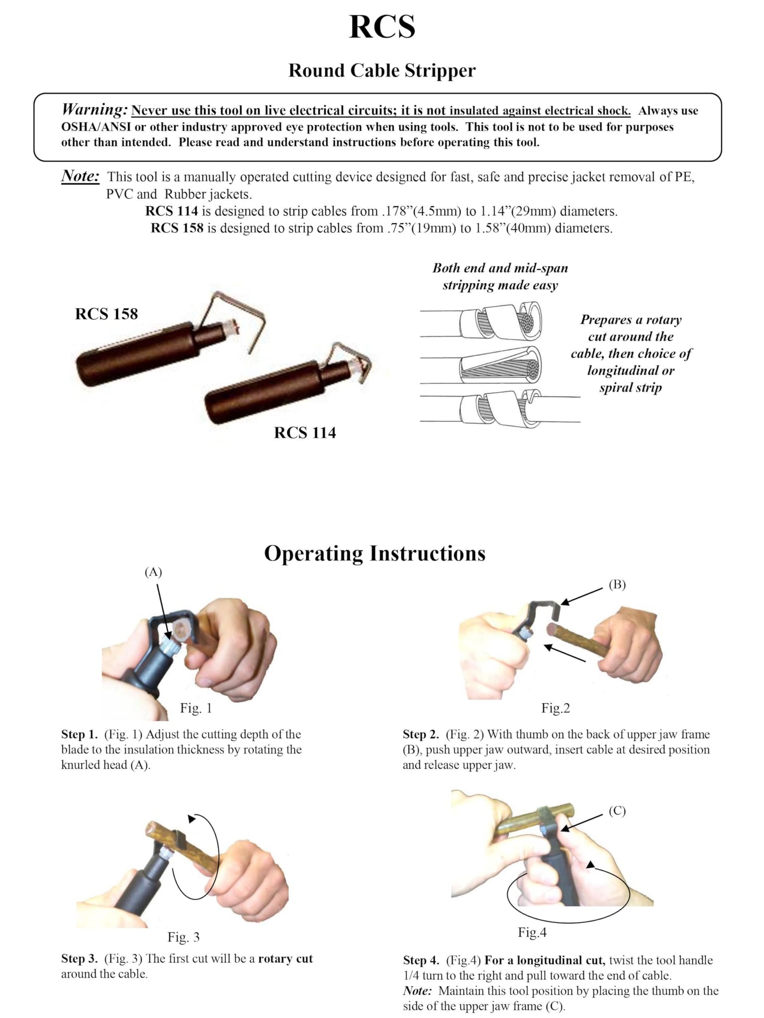 Detalles: Miller RCS-114 Hard Cable Jacket Stripper mfg PN: 37140 Longitud: 138 mm. Peso: 99,2 g. Diámetro exterior del cable: 4,5 mm. Diámetro exterior máximo del cable: 29 mm