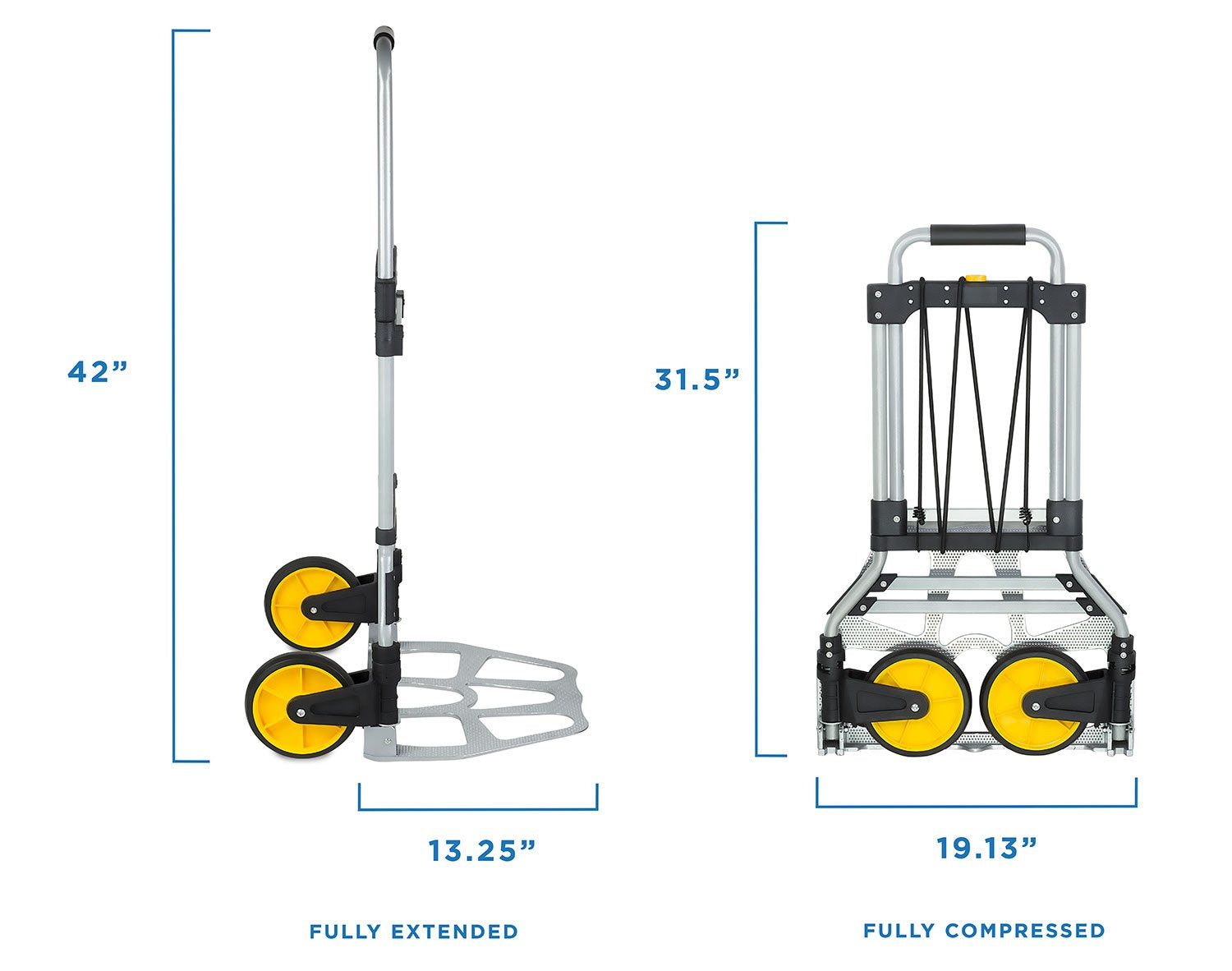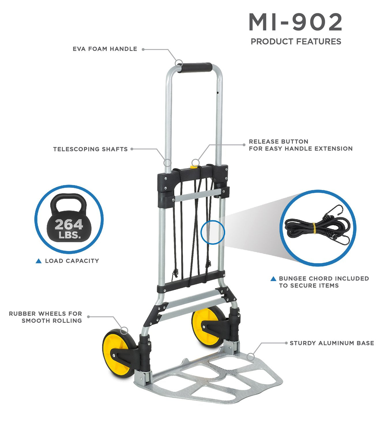 - UTILIDAD PORTÁTIL PREMIUM Y CARRITO MÓVIL - Fabricado con aleación de aluminio y clasificado para soportar hasta 264 libras. El cordón elástico incluido asegura las cargas a la carretilla de mano. Las grandes ruedas de goma no generan ruido y ruedan con suavidad.