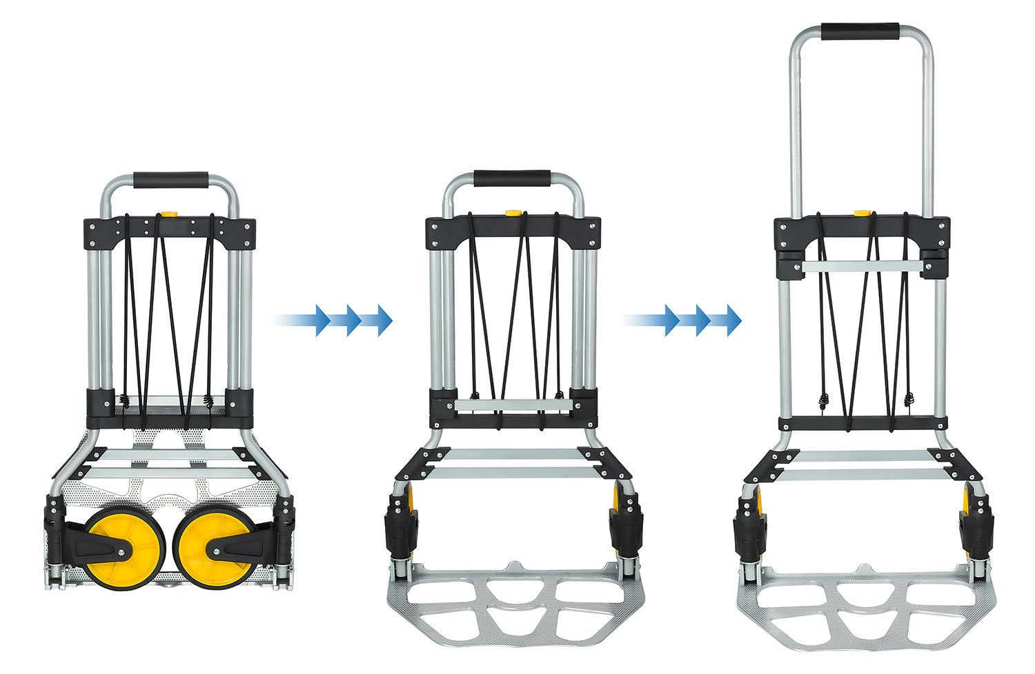 Carretilla de Mano y Plataforma rodante Plegable, 264 LB de Capacidad Carro de Equipaje de Servicio Pesado con asa telescópica y Ruedas de Goma, Plateado, Negro, Amarillo