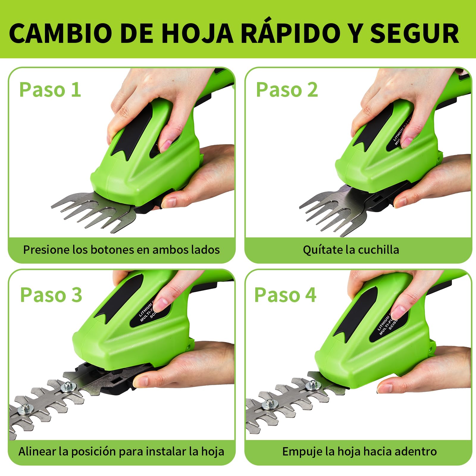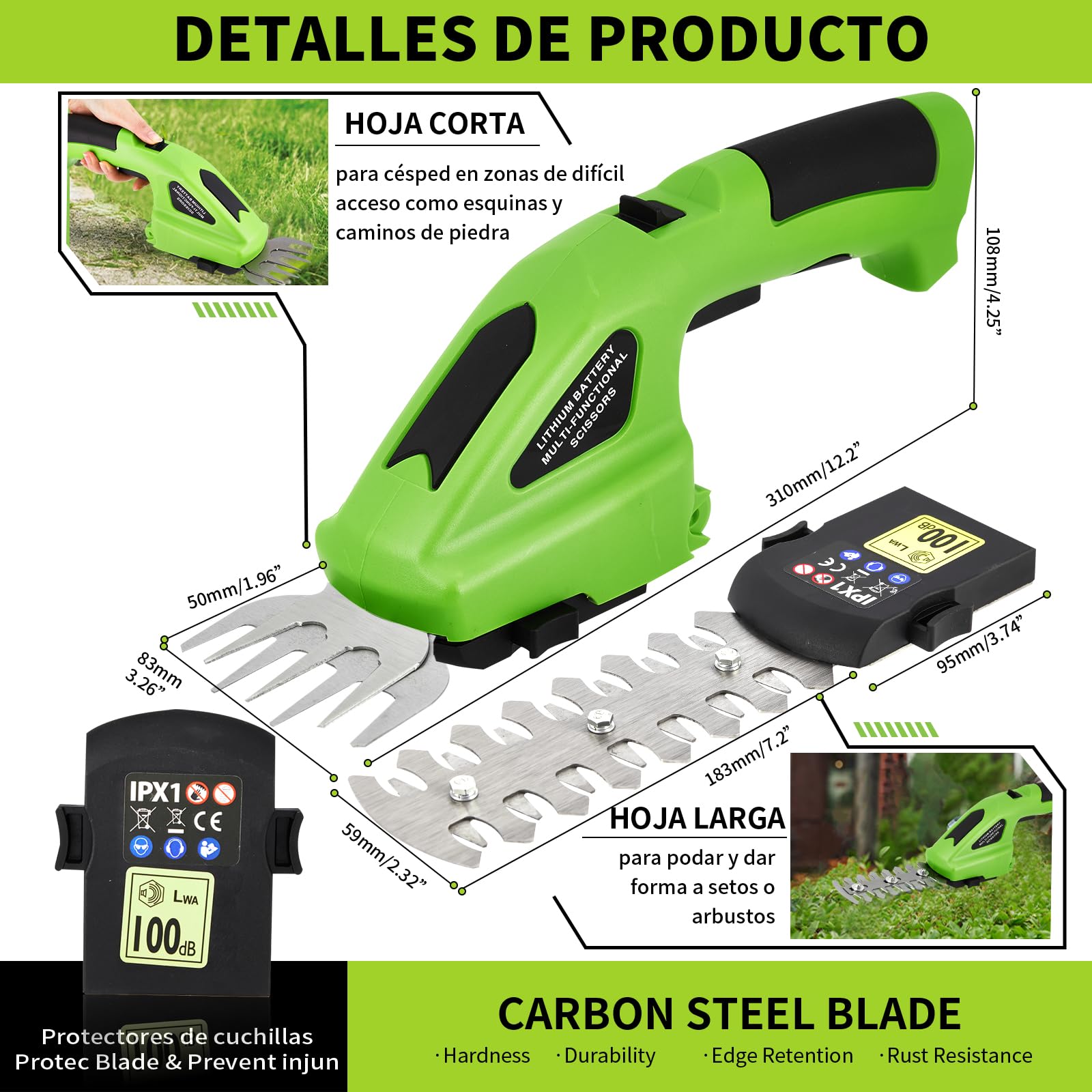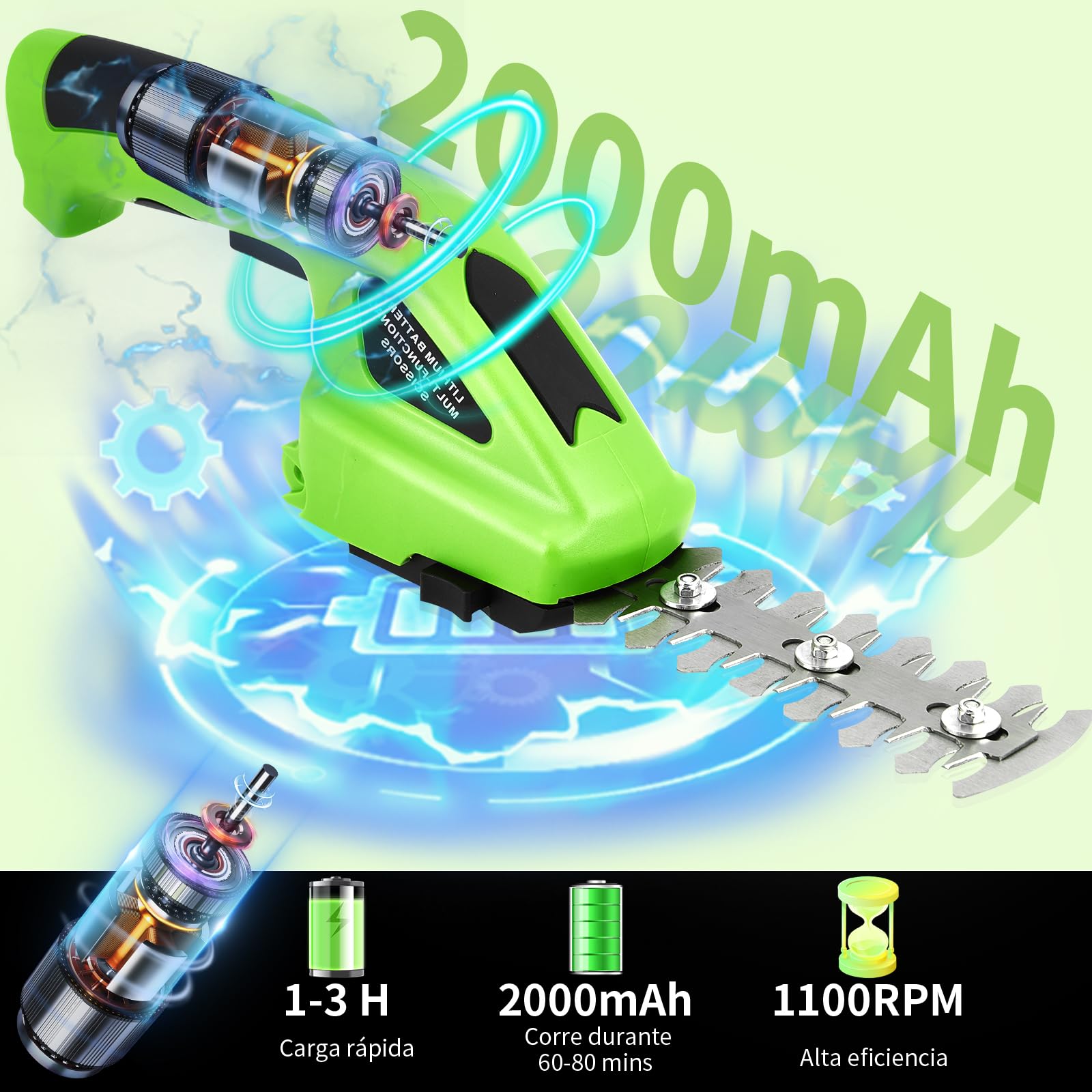 Tijeras de podar Inalámbrico, Cortadora de Césped y Setos 2 en1, Cortasetos de Mano Inalámbrico, Batería Recargable, 7.2V, Diseño de Seguridad