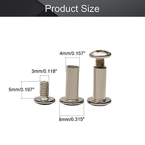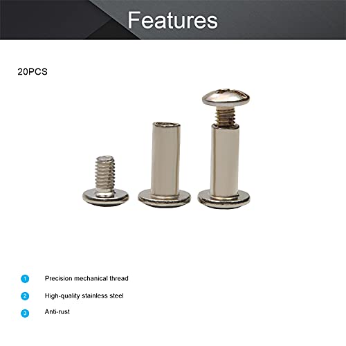 🔩 MroMax Kit de Clasificación de Tuercas Ciegas Para Pernos de Conexión M3, 20 Tornillos de Rosca de Acero al Carbono Para álbumes de Recortes, álbumes de Fotos, Encuadernación Y Reparación de Cinturones de Cuero