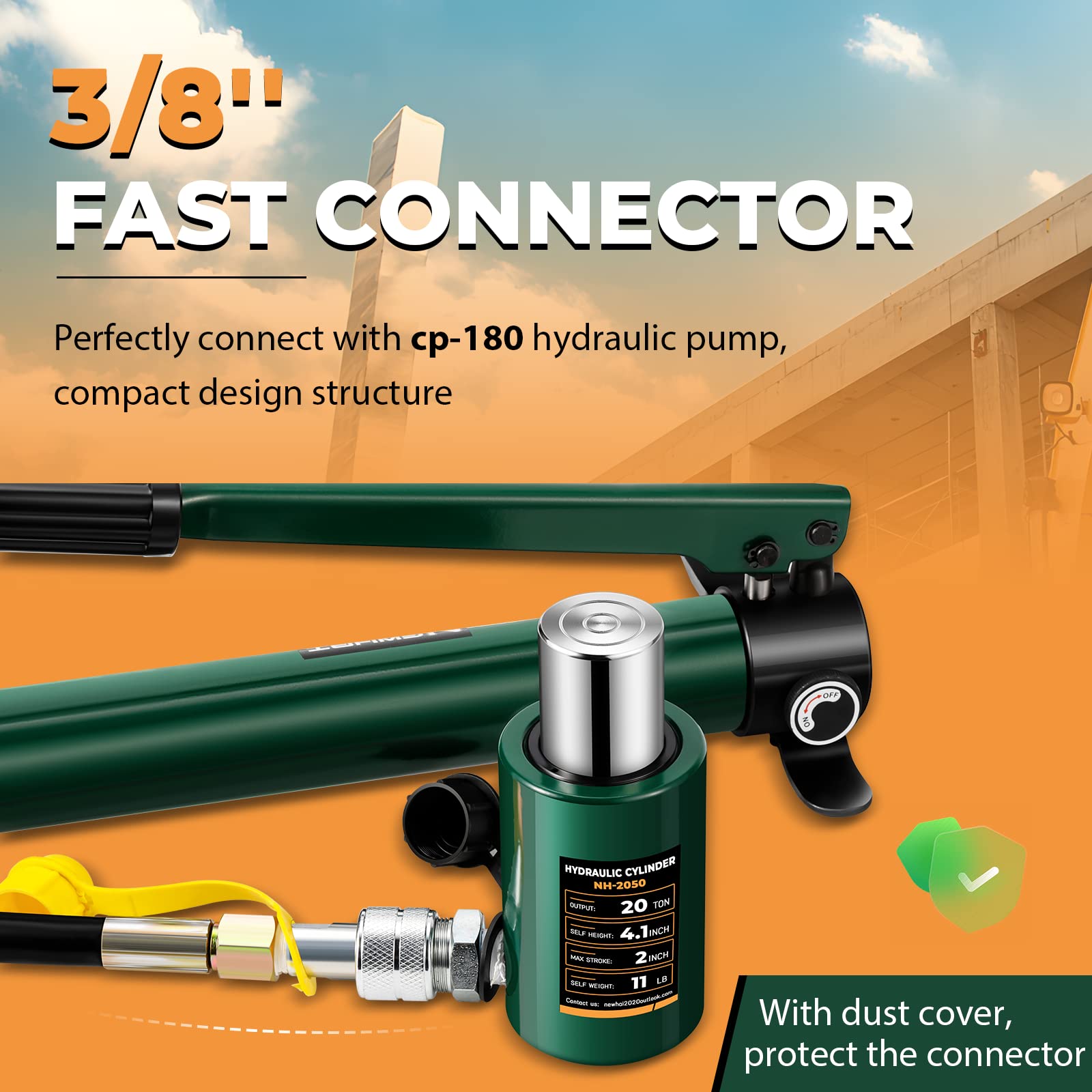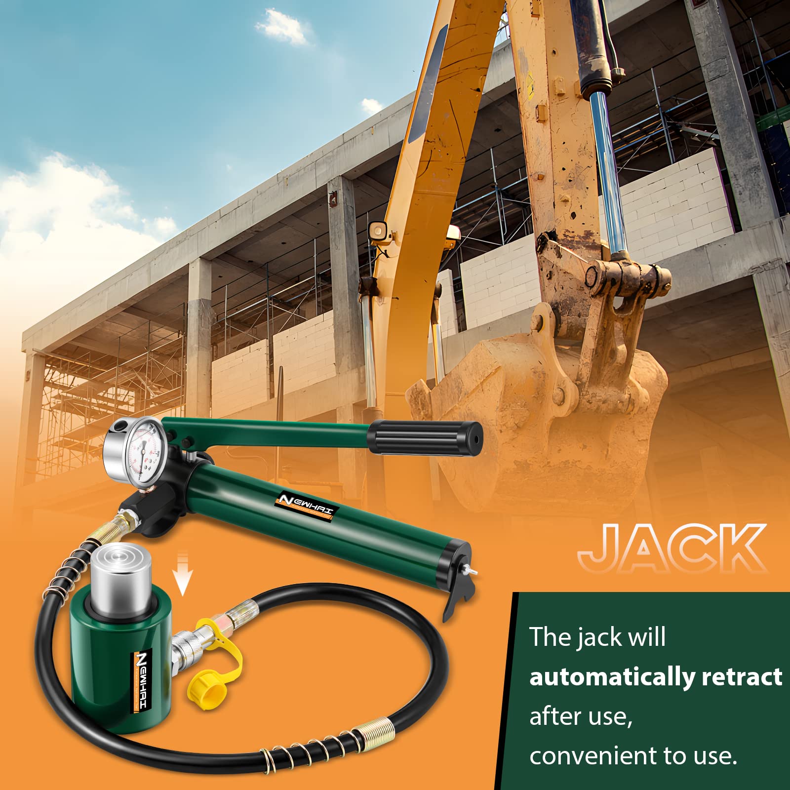 Gato con Bomba de Mano hidráulica de 20 toneladas de 5 cm + cp-180 con manómetro hidráulico Porta Power Kit de 20 toneladas, Cilindro Corto de Perfil bajo