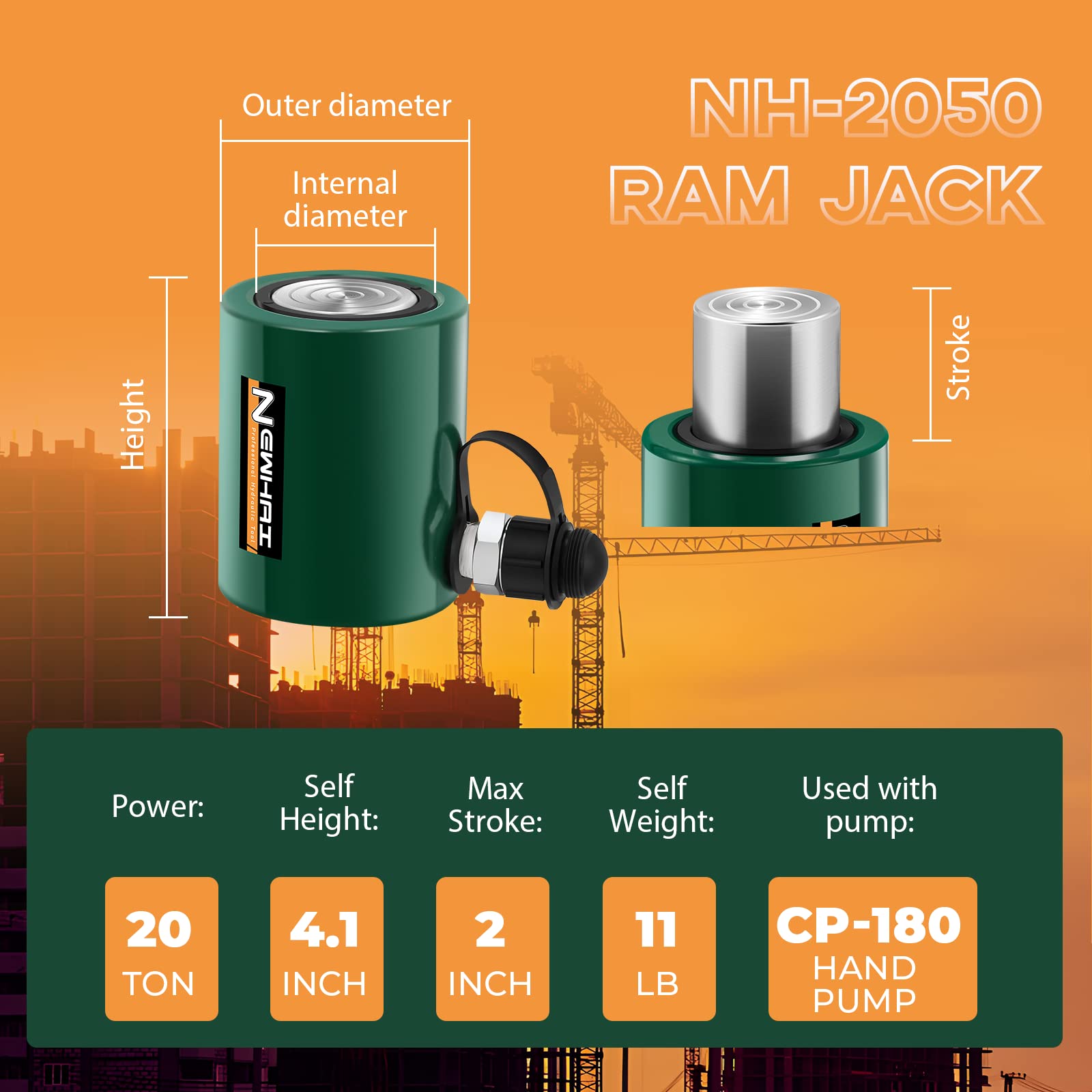 - Parámetros de la bomba de 20 toneladas. Salida: 20 toneladas. Altura automática: 4.1 pulgadas. Carrera máxima: 2 pulgadas. Diámetro interior: 6.5 cm. Diámetro exterior: 8.5 cm. Peso: 4.4 kg. Bomba CP-180 con manómetro de aceite: Capacidad de aceite: 400 cc; Alta presión: 60 kg/cm²; Flujo de alta presión: 20 cc; N.W./G.W. : 7 libras/9 libras.