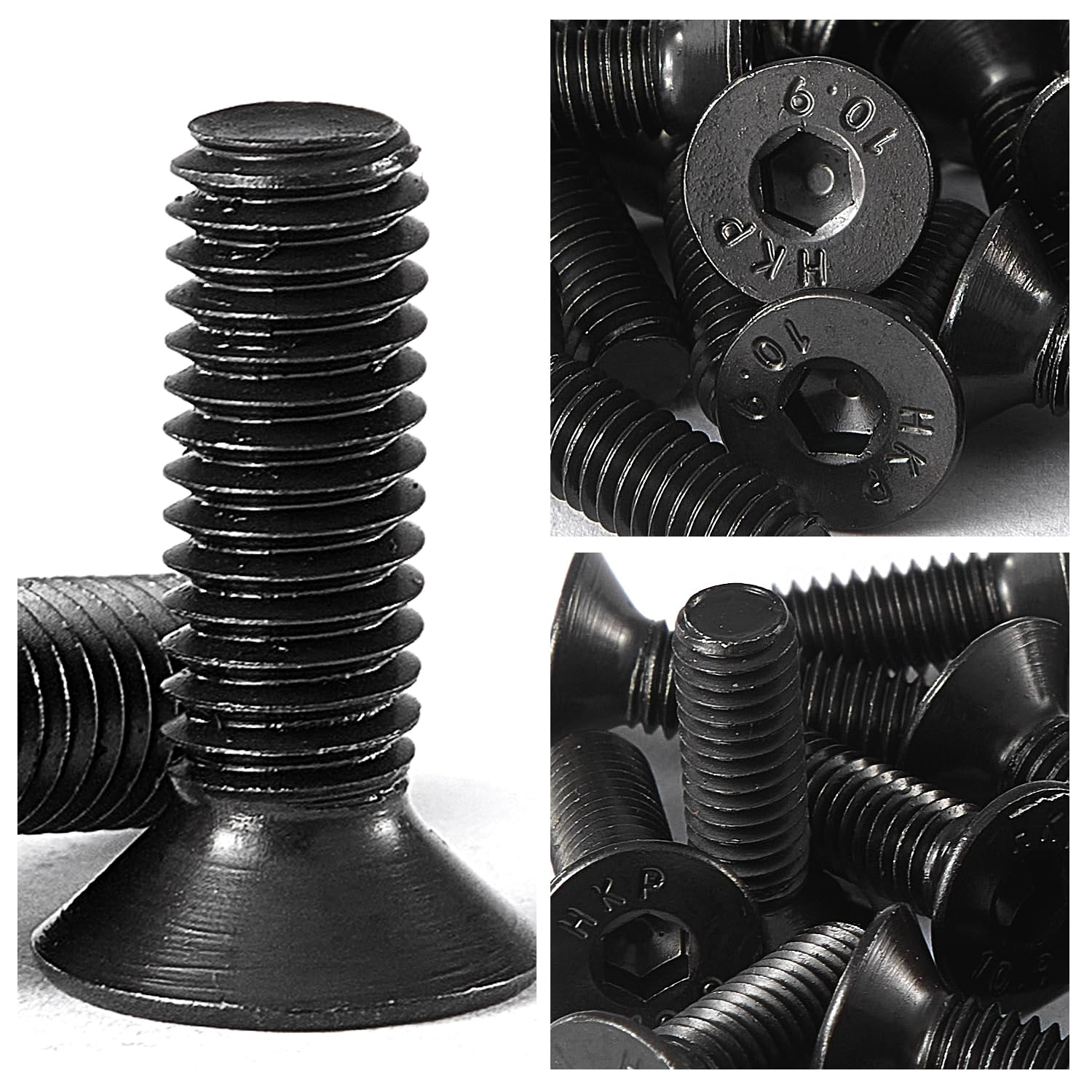 - Material: Está hecho de acero de aleación de alta calidad de 10.9 grados, y la superficie está tratada con óxido negro. Tienen una excelente resistencia a la corrosión, firmeza, resistencia al desgaste y resistencia a bajas temperaturas.