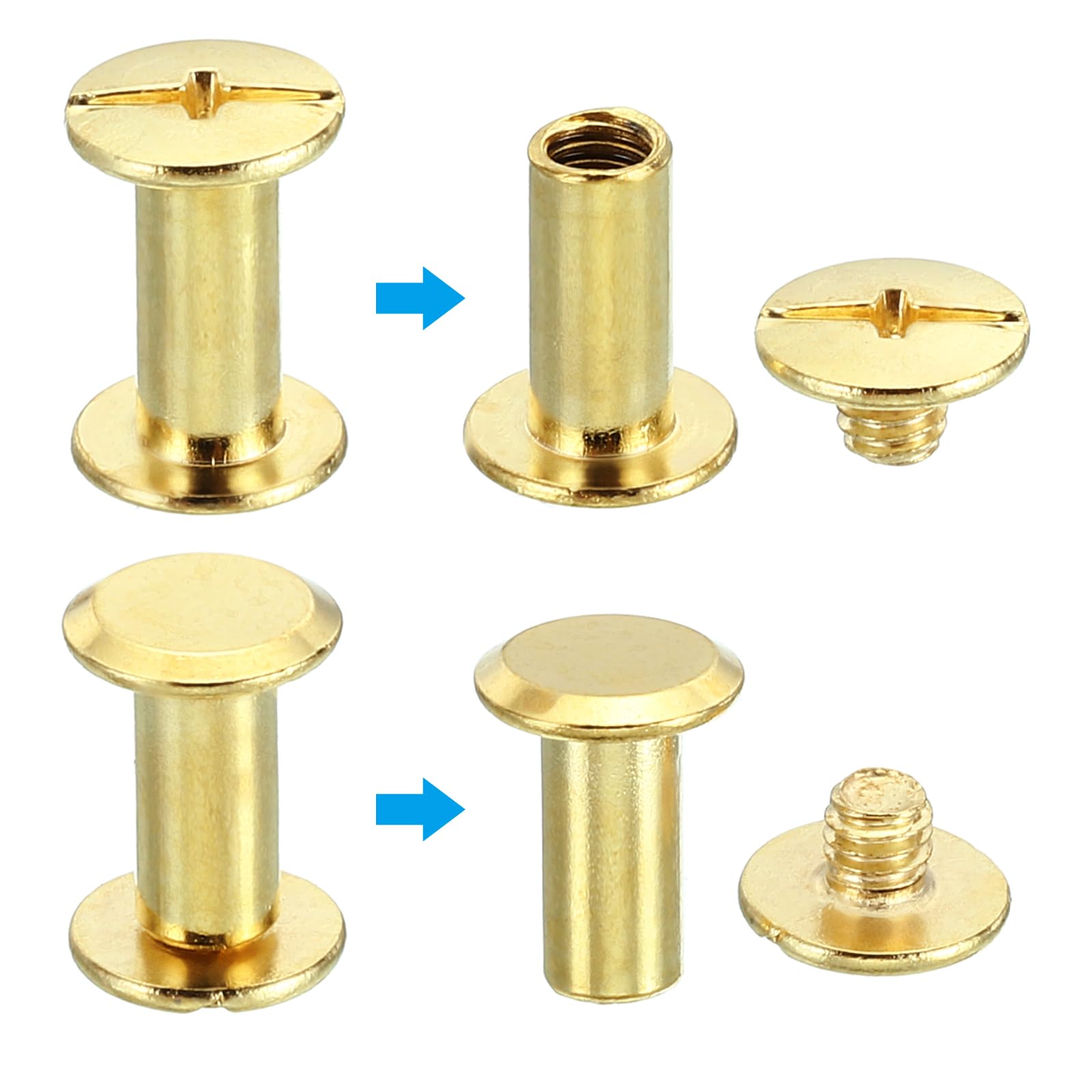 🔩 PATIKIL 50 Juegos Chicago Tornillos de Unión Phillips M5X12mm Remaches de Cuero Sujetadores de Latón Conectores de Acero para Cuero Cinturones Fotos Recortes Álbumes Dorados
