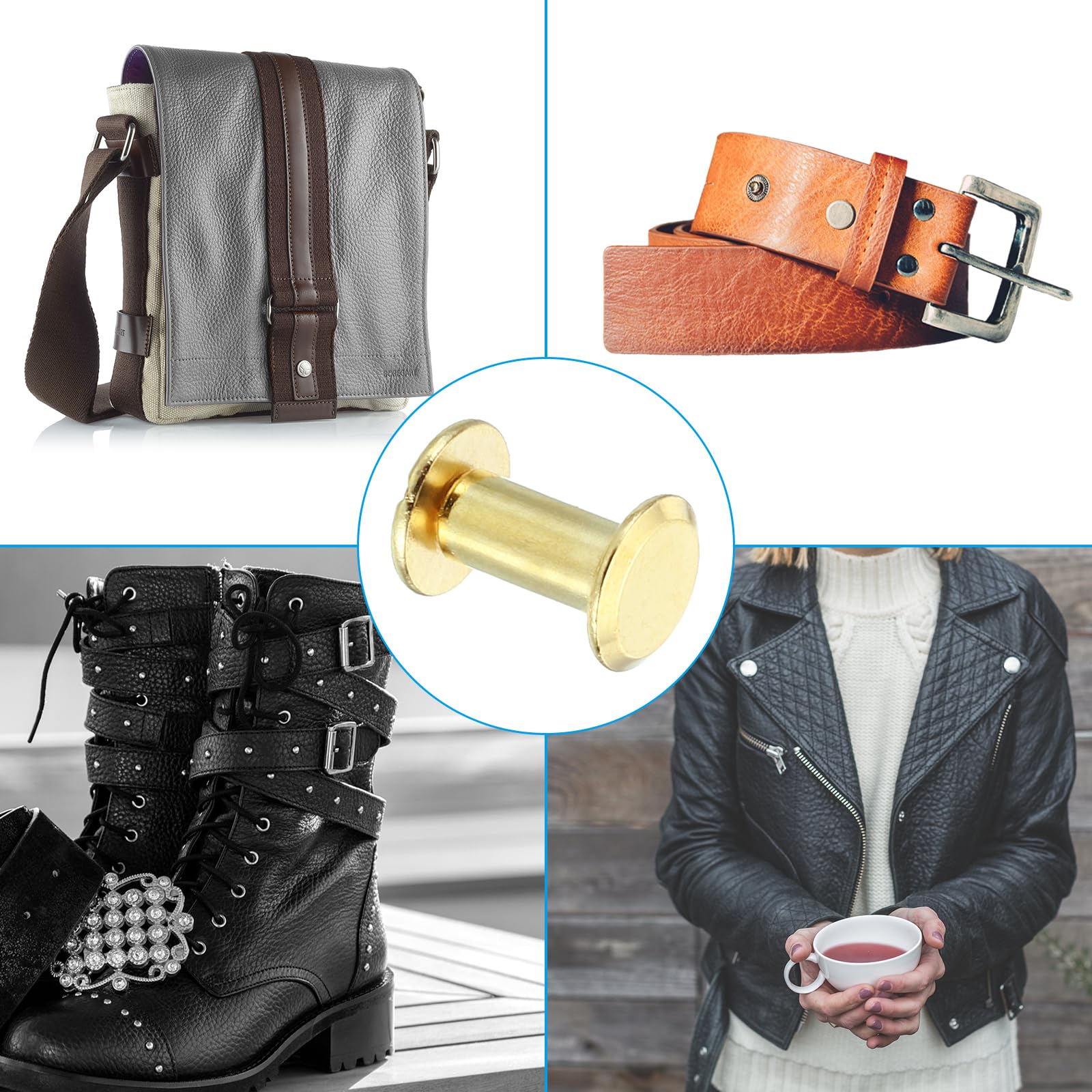 Detalles: Los tornillos Chicago se utilizan ampliamente en proyectos de bricolaje como cinturones, bolsos, zapatos, ropa, pulseras de cuero, libros, álbumes de recortes, sillas de montar de cuero, billeteras, libros de cocina, carpetas de presentación, folletos publicitarios, etc. Es un accesorio útil para tu vida diaria.