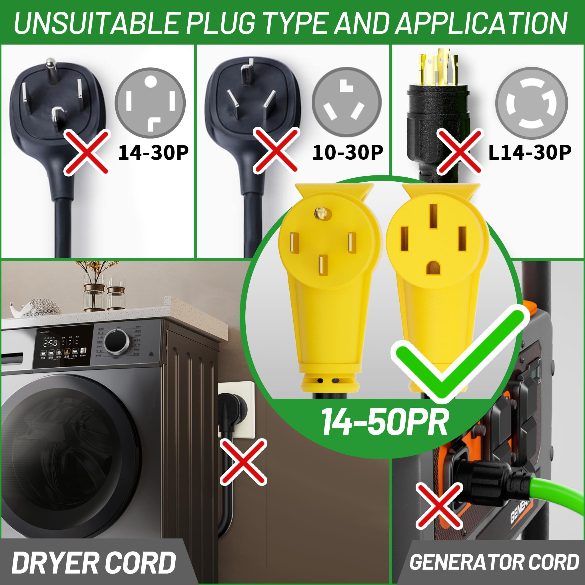 - Cable de extensión RV de 50 AMP: NEMA 14-50P macho a NEMA 14-50R hembra, 50 Amax, 125/250 voltios, 6250/12500 vatios, STW, NEMA 14-50 cable de extensión para carga EV de nivel 2 como Tesla Model 3, S, X e Y; ten en cuenta para comparar el tipo de enchufe deben deben deben evitar ininincompatibilidad u otros accidentes