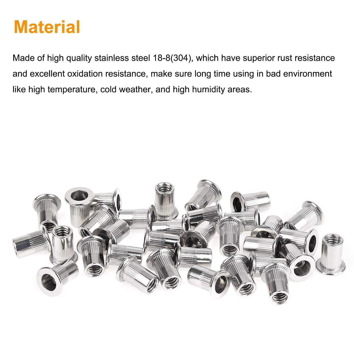 - El paquete incluye: 150 tuercas de remache de acero inoxidable 18-8 (304) de 1/4"-20. No dudes en ponerte en contacto con nosotros si tienes alguna pregunta o duda.
