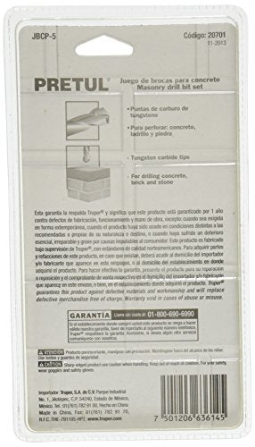 ▶Juego de brocas 5 para concreto Pretul JBCP-5,