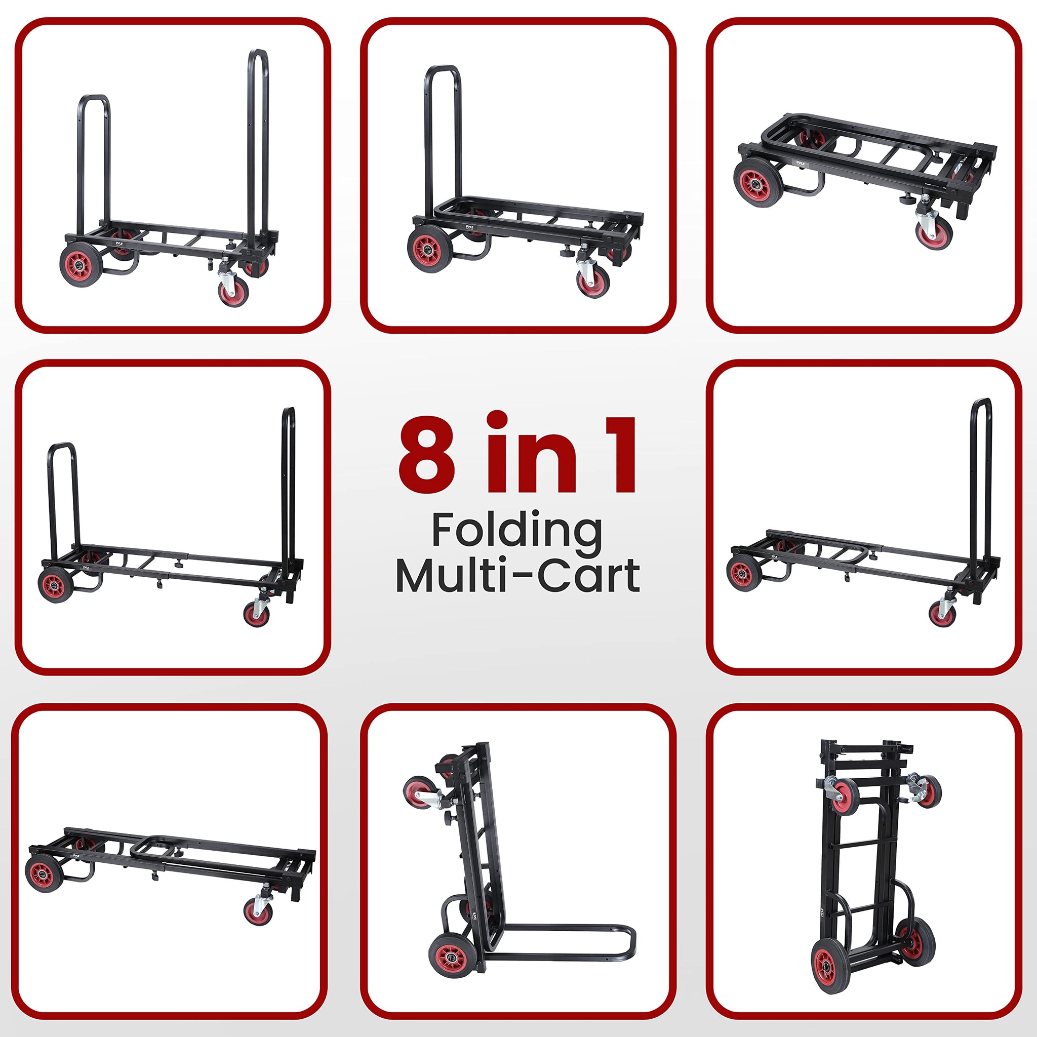 Carrito Plegable Compacto Ajustable 8 en 1, Carro de Mano, Carretilla/Plataforma con Ruedas R-Trac, expandible hasta 25.2 Pulgadas a 40 Pulgadas