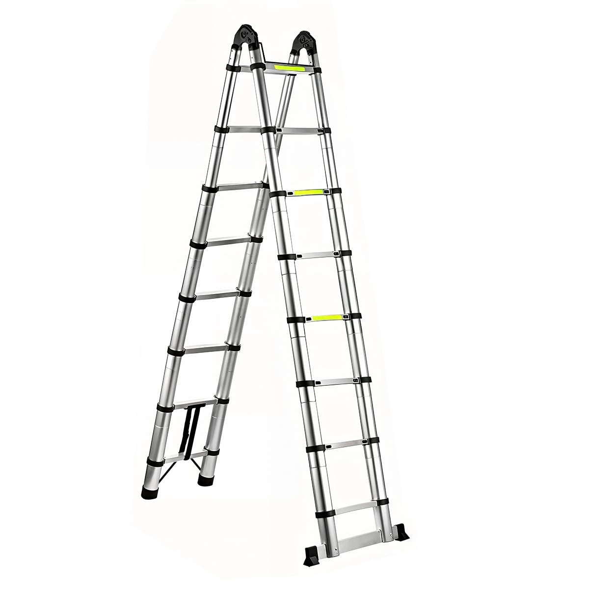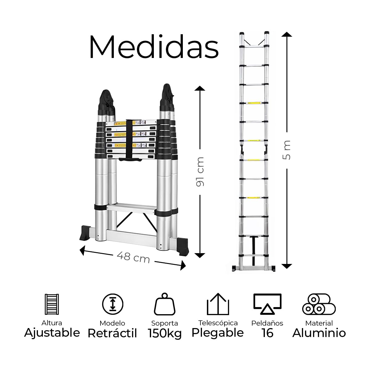 ▶ Escalera Telescópica Plegable, Escalera de Tijera Altura Ajustable con Escalones, Aluminio Reforzado y Duradero, Soporta hasta 150KG, Modelo Retráctil de Mayor Estabilidad (5 Metros)