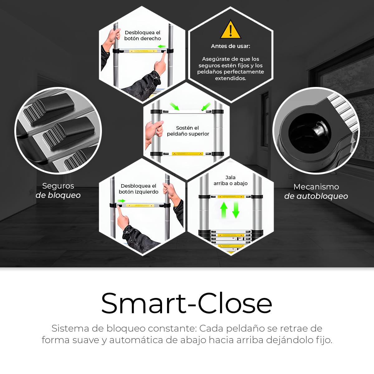 - Smart-Close: Sistema de bloqueo constante. Cada peldaño se retrae de forma suave y automatica.