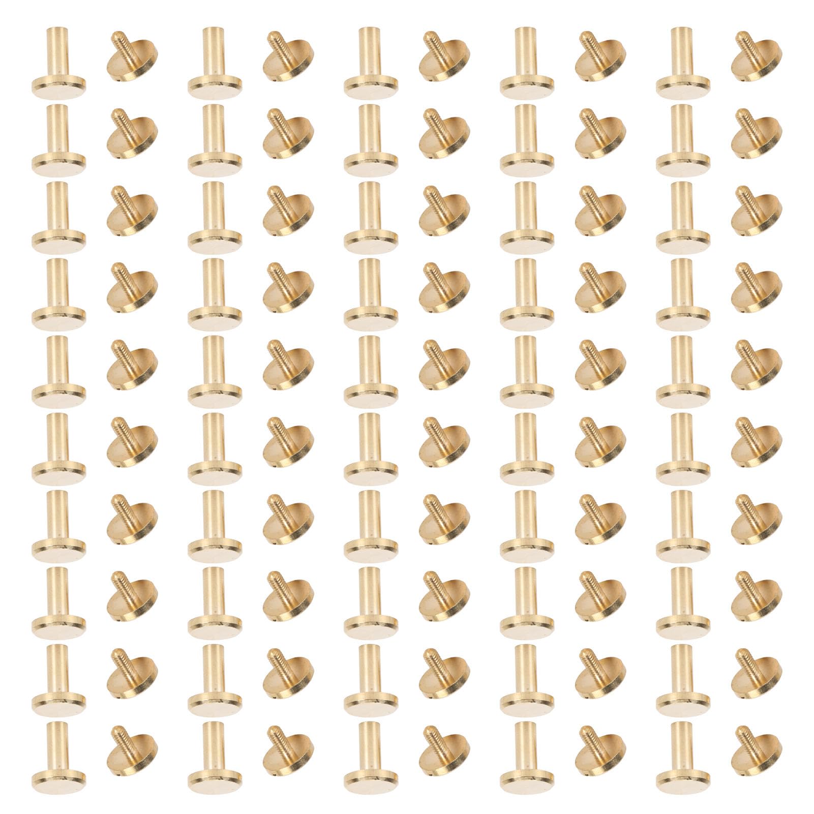 - [50 juegos] Este juego incluye 50 remaches y 50 tornillos de cabeza plana, lo que proporciona amplias cantidades para satisfacer sus necesidades diarias de tareas de encuadernación y fijación.