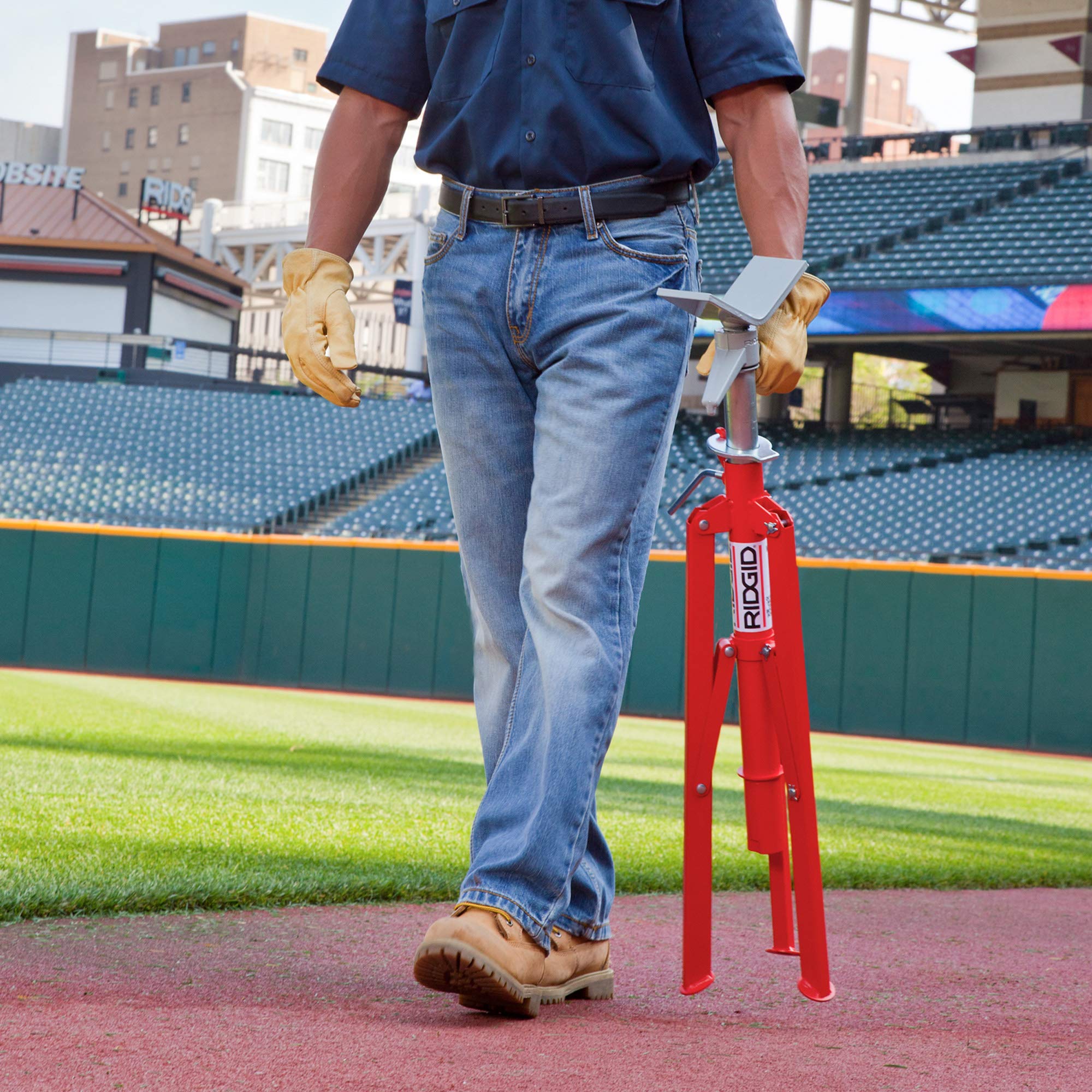 Detalles: El resistente soporte de tubo alto RIDGID 56662 V mantiene el tubo en su lugar de forma segura para una variedad de aplicaciones. Diseñado para un uso rápido y fácil, el soporte de tubería mantiene la cabeza en V al tubo para ajustes rápidos y cuenta con anillos de bloqueo que permiten ajustes rápidos de altura verticales de 28 a 52 pulgadas.