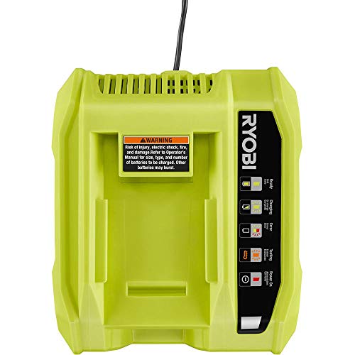 Detalles: RYOBI presenta el cargador rápido de iones de litio de 40 voltios. Compatible con todas las baterías RYOBI de 40 voltios. Las luces indicadoras proporcionan el estado de carga de la batería e incluso te permiten saber si la batería está demasiado caliente o demasiado fría para cargarla. Pasa menos tiempo cargando baterías y más tiempo haciendo trabajo en el patio. Para tiempos de carga, consulta la tabla de tiempo de carga o mira en el carrusel de imágenes. Respaldado por una garantía limitada de 3 años. Iluminación LED de medidor de temperatura Tecnología de carga avanzada para protección de la batería y mayor vida útil. Luces indicadoras que muestran el estado a medida que las baterías se cargan y mantienen Las baterías se venden por separado Solo para uso con baterías RYOBI de 40 voltios Para uso con todas las baterías de iones de litio de 40 voltios RYOBI Compatible con los modelos: funciona con todas las herramientas de iones de litio RYOBI de 40 voltios. Voltaje (voltios): 40 Utilizado con tipo de equipo: soplador, motosierra, cultivador/timón, generador, cortasetos, cortacésped, cabezal eléctrico, lavadora a presión, cortacésped, soplador de nieve, recortadora de cuerda. Compatible con las marcas: RYOBI. Longitud del cable (pies): 6 Certificaciones y listados: Listado UL Garantía del fabricante: 3 años de garantía limitada Ancho del producto: ): 6 Altura del producto (pulg. ): 3 Profundidad del producto (pulg. ): 7